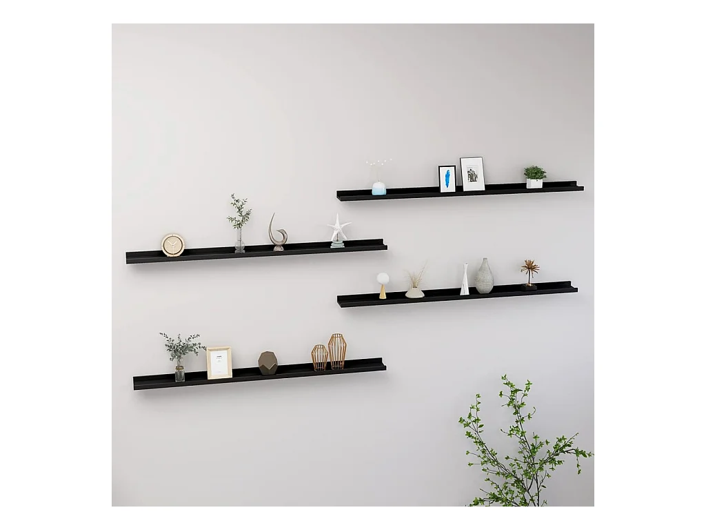 Étagères à rebord pour cadre photo 2 pcs Noir 60x9x3 MDF