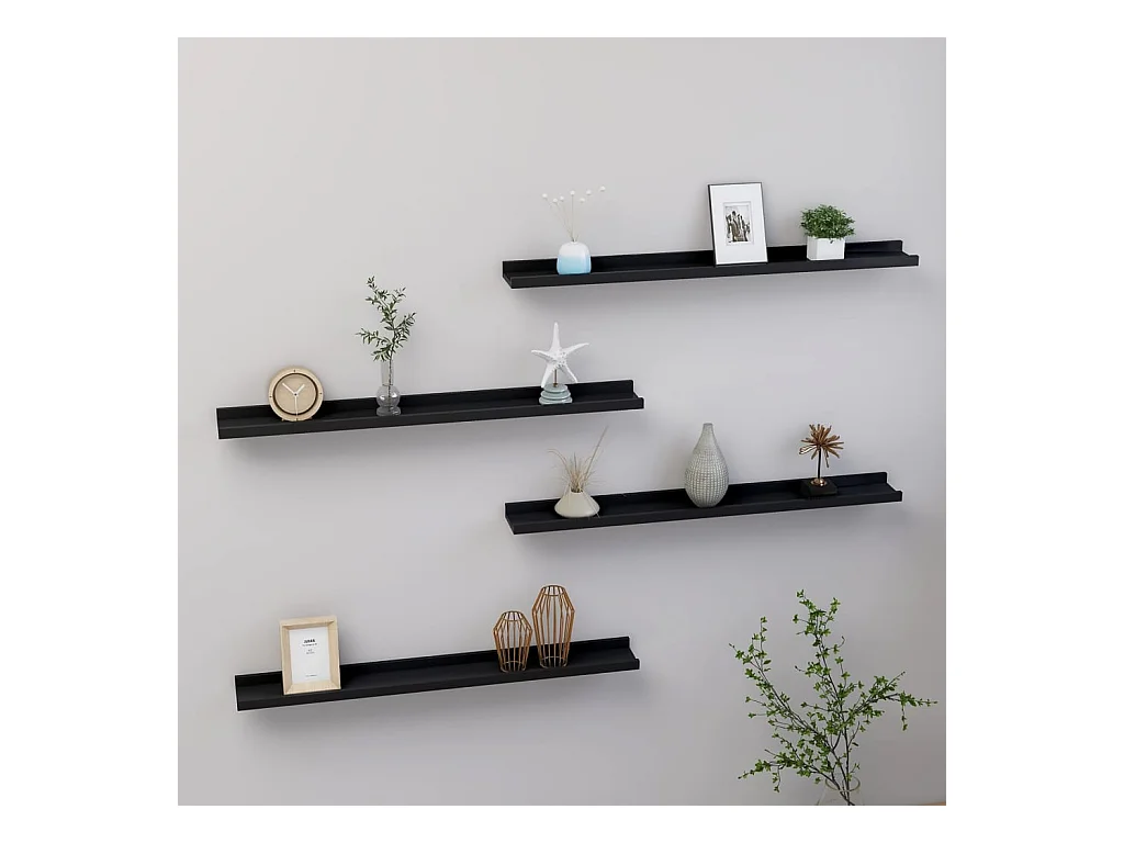 Étagères à rebord pour cadre photo 2 pcs Noir 60x9x3 MDF