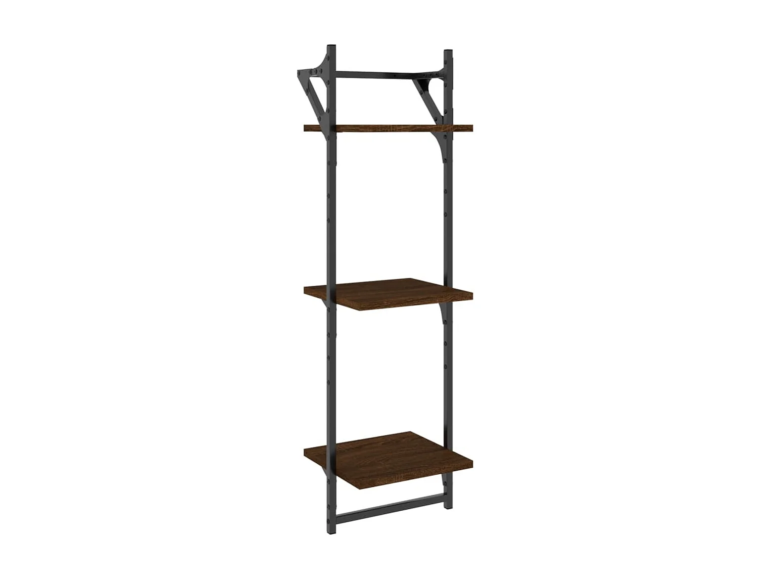 Étagères murales à 3 niveaux avec barres 2 pcs chêne marron