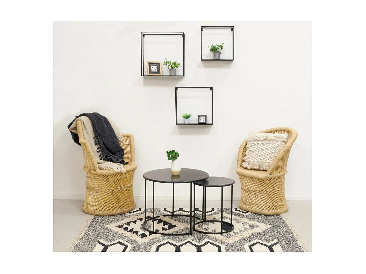 Etagere Filaire Murale Balancelle 67.5x62cm Noir, Marron