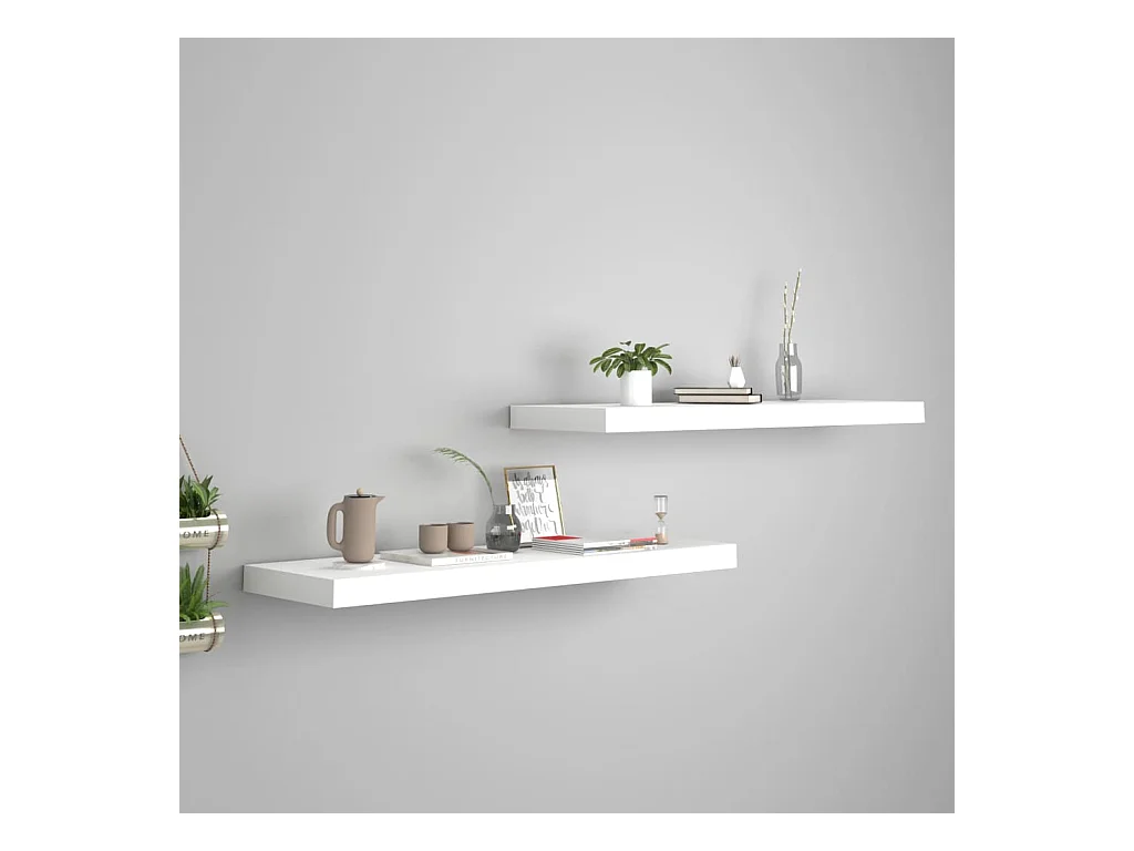 Étagère murale flottante 2pcs Blanc brillant 120x23,5x3,8 MDF