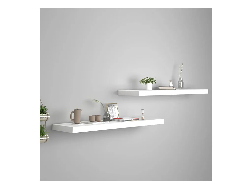 Étagère murale flottante 2pcs Blanc brillant 120x23,5x3,8 MDF