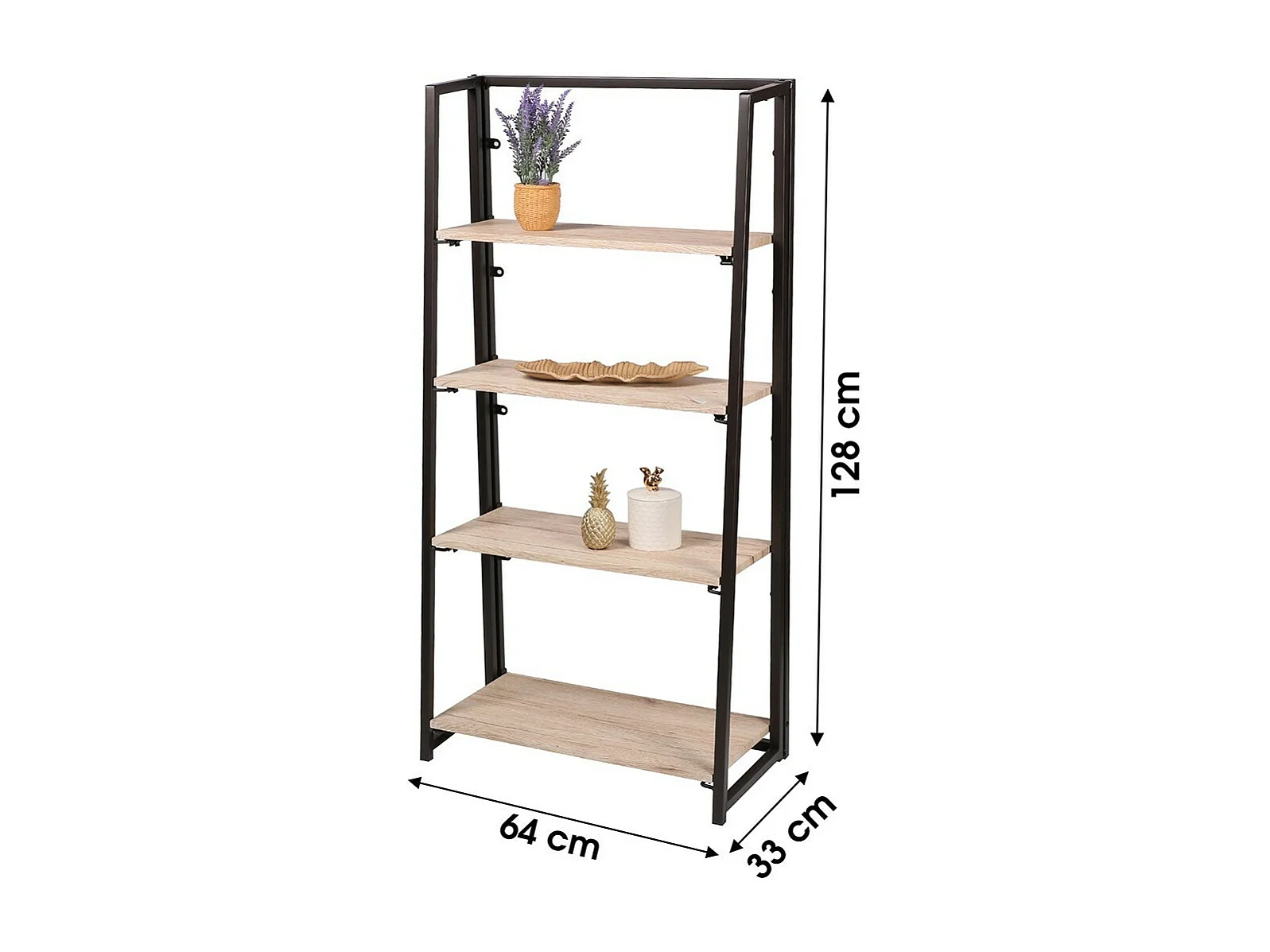 Présentoir pliable 4 niveaux DARYL – Style industriel – Chêne et noir