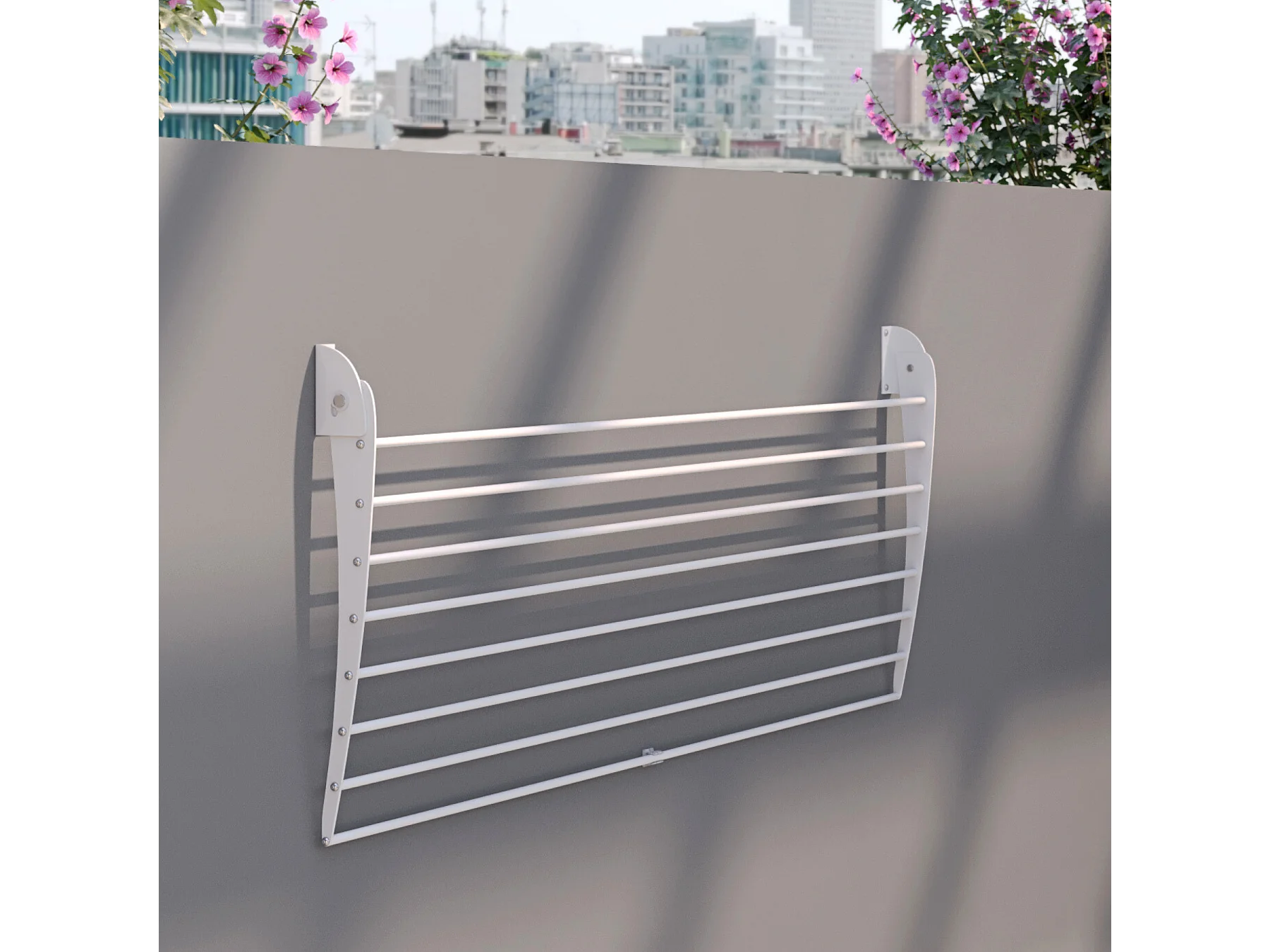 Étendoir balcon pliable et inclinable aluminium résistant – blanc – 62x63x8 cm DUO