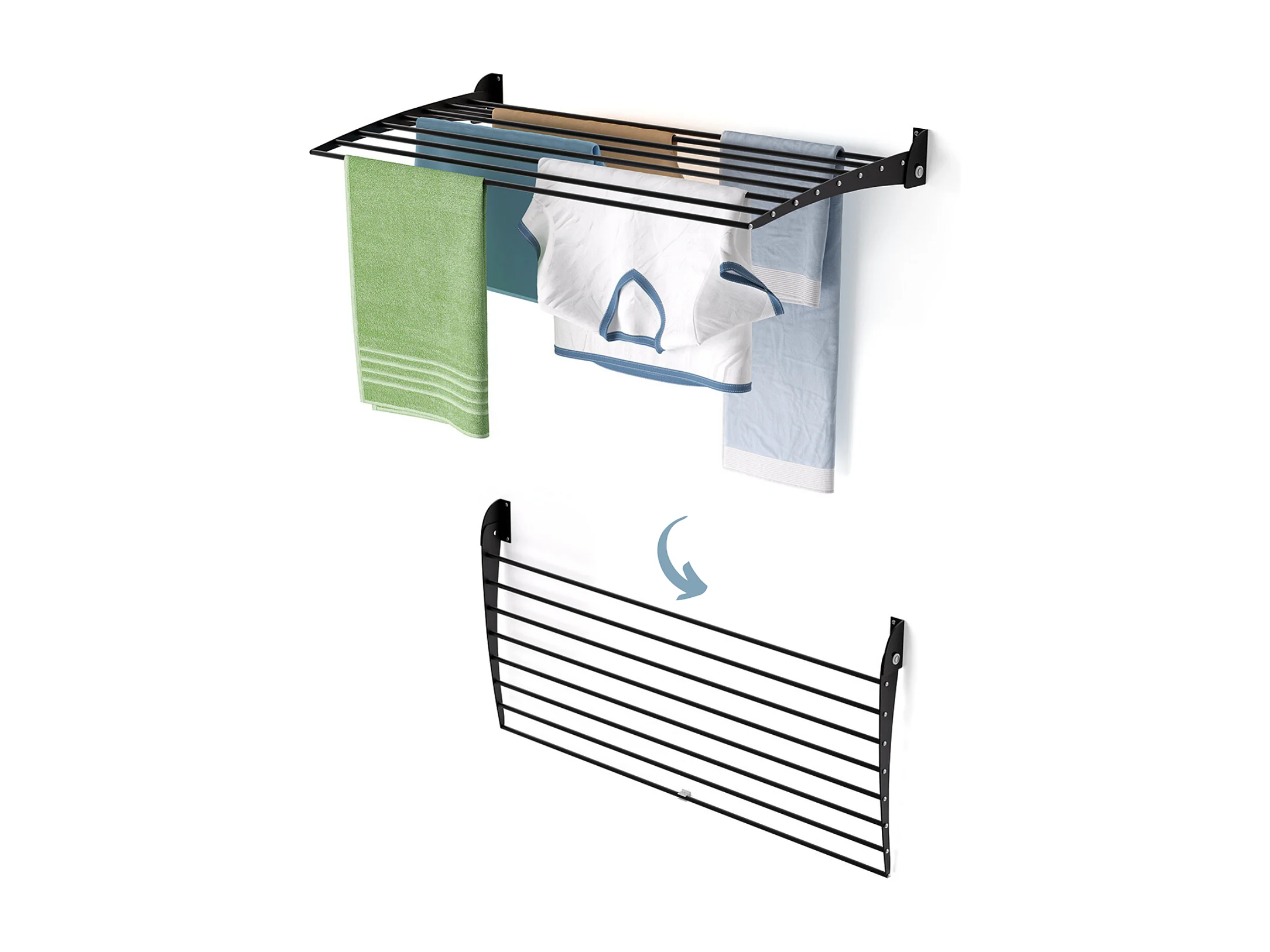 Étendoir à linge mural en aluminium résistant – noir – 100x50x10 cm Fold Down 100