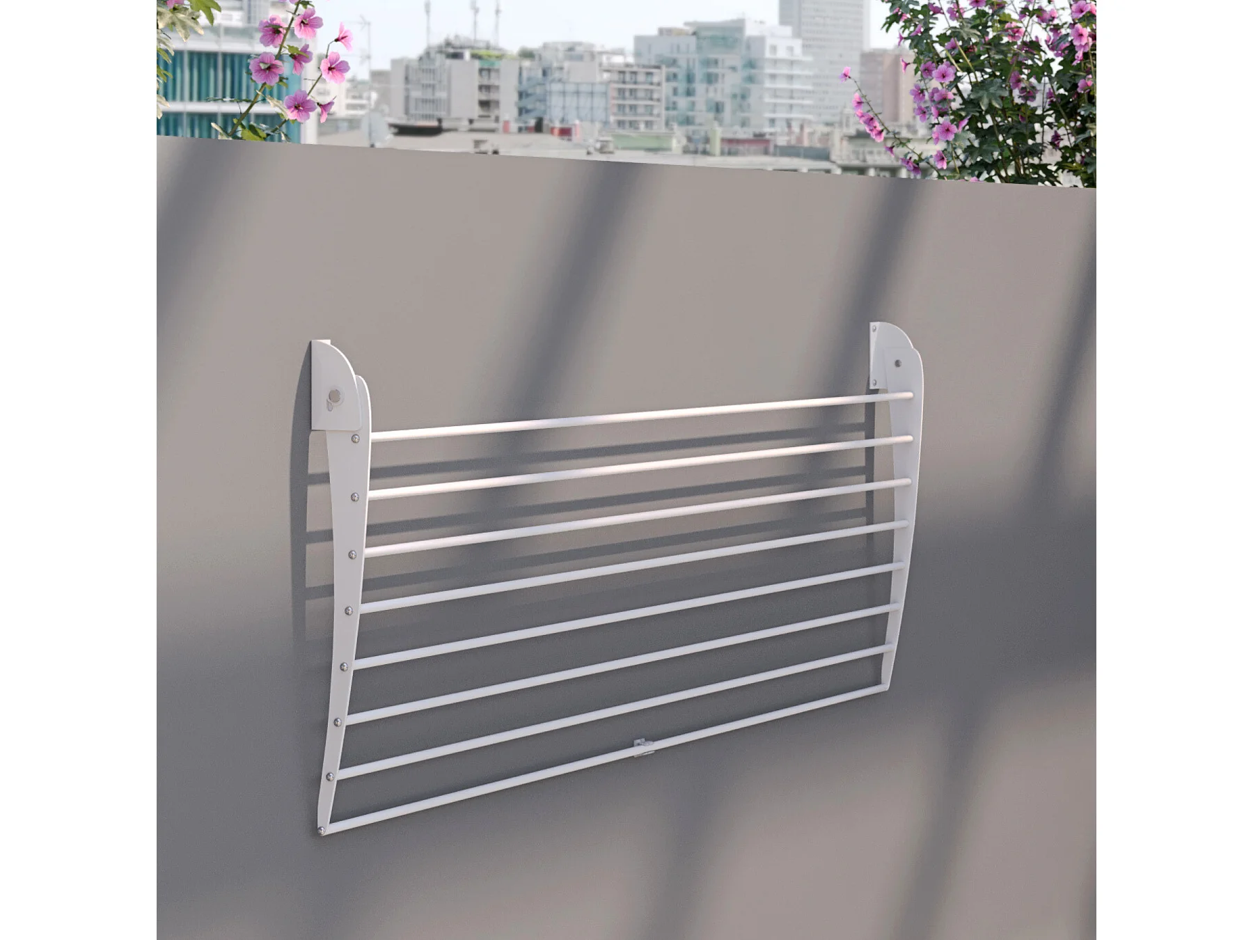 Étendoir balcon pliable et inclinable anti-rouille – blanc – 82x63x8 cm DUO