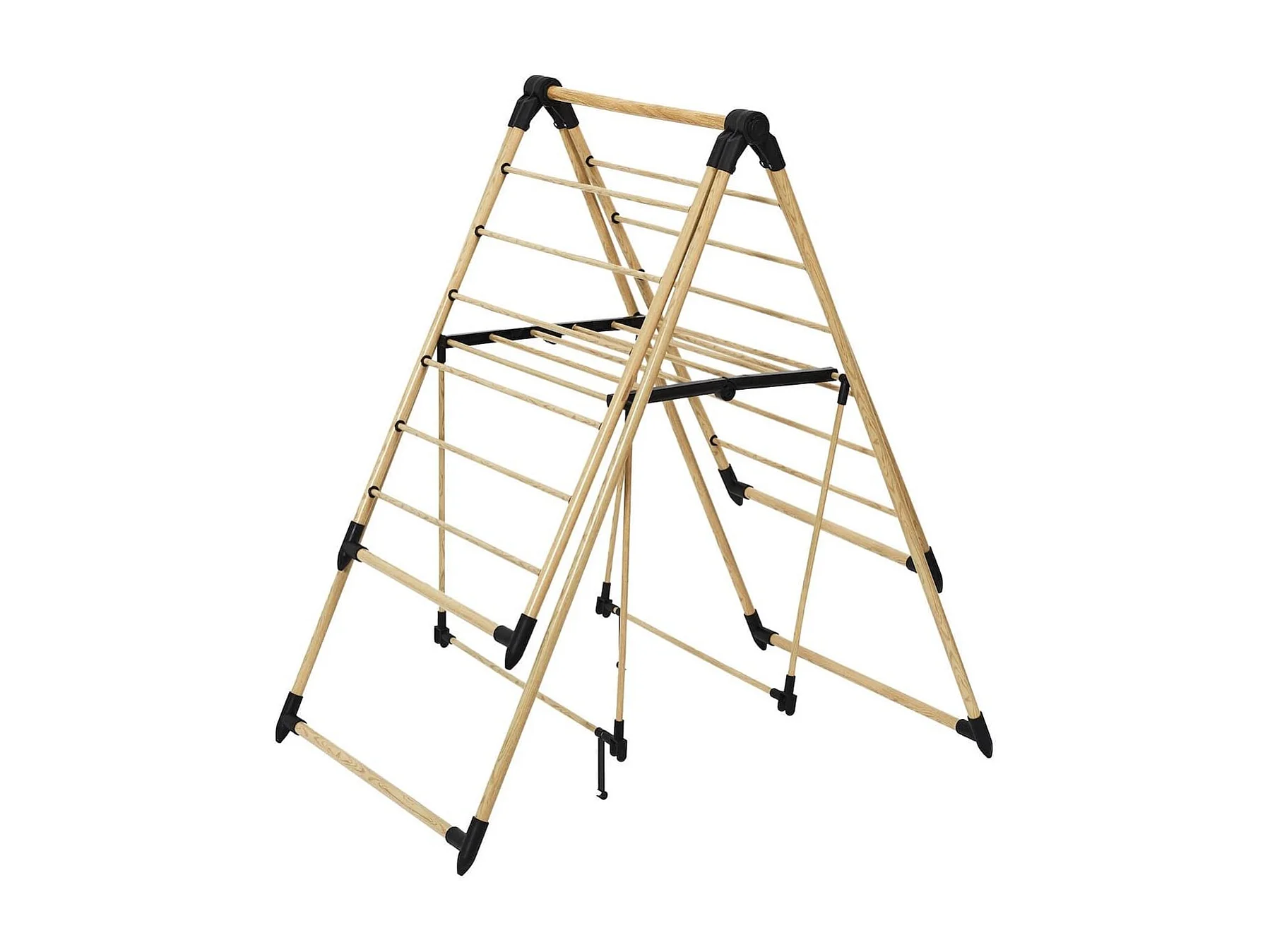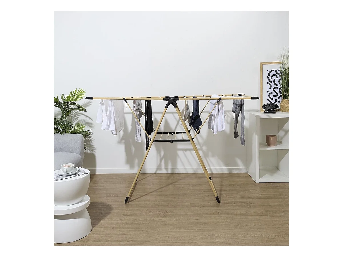 Etendoir à linge pliable 13 mètres étendage tubes métallique effet bois