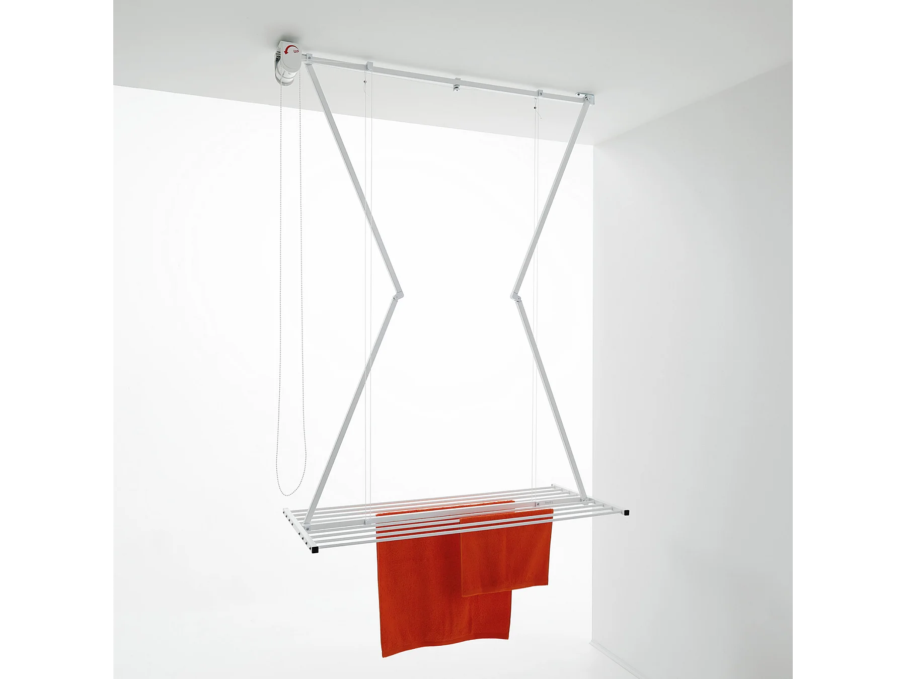 Étendoir de plafond manuel en aluminium résistant – blanc – 128x54x25 cm Mini 120