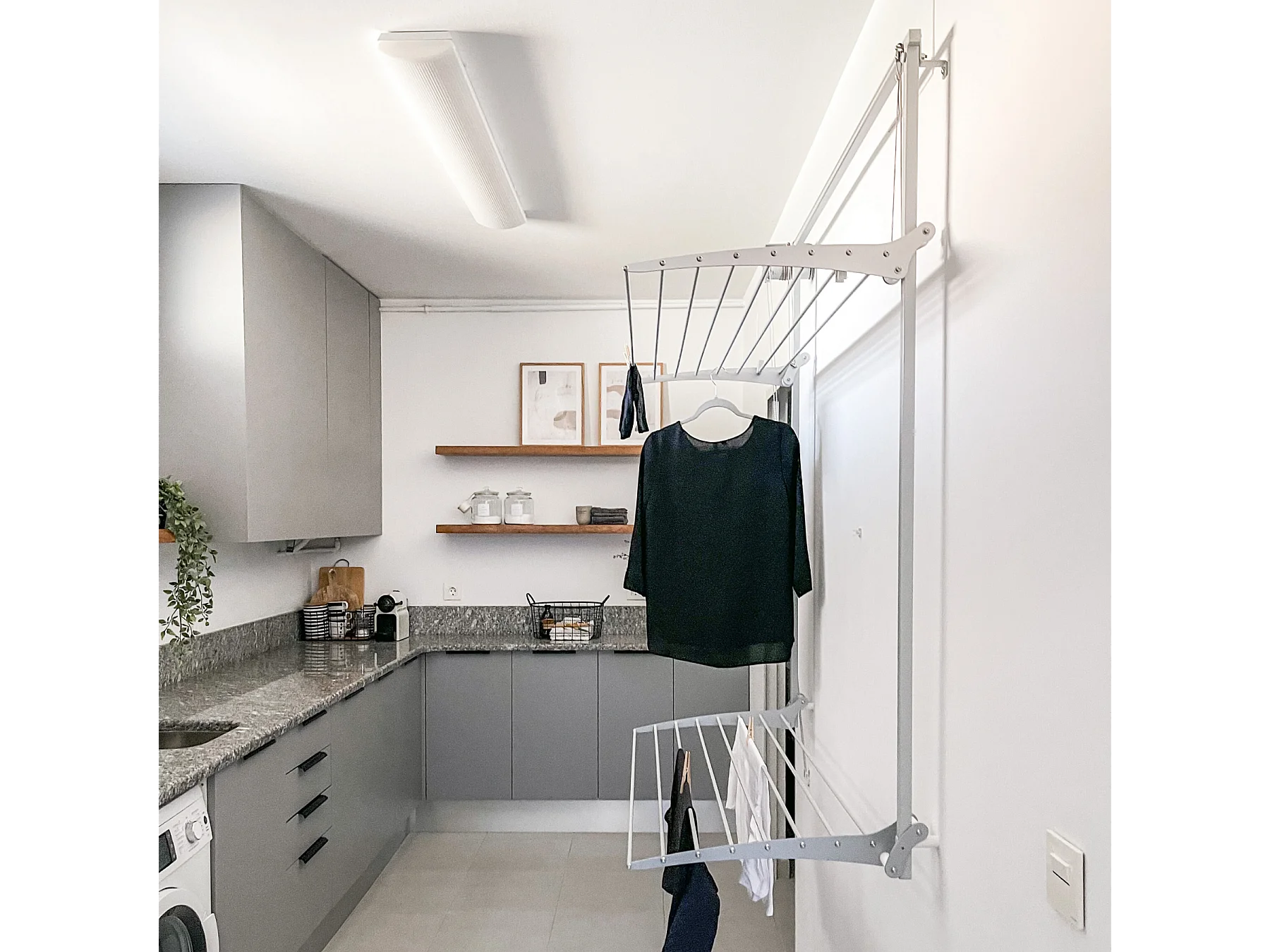Étendoir mural 2 grilles aluminium résistant – blanc – 152x52x137 cm Wall Plus
