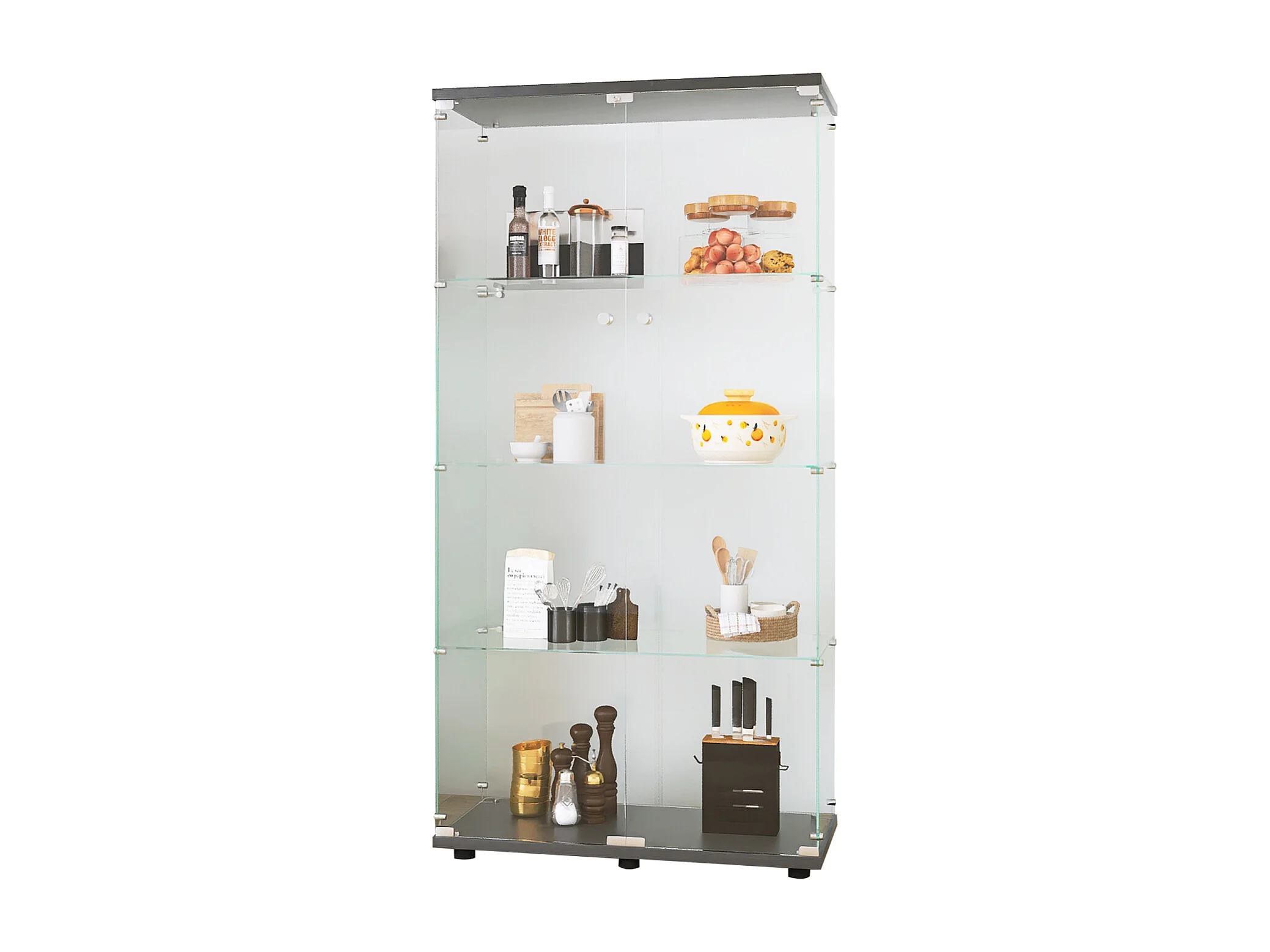 Étiquette Curio debout au sol -164.34 × 36.32 × 80.52 cm - avec 4 étagères 2 portes - verre trempé transparent - Noir