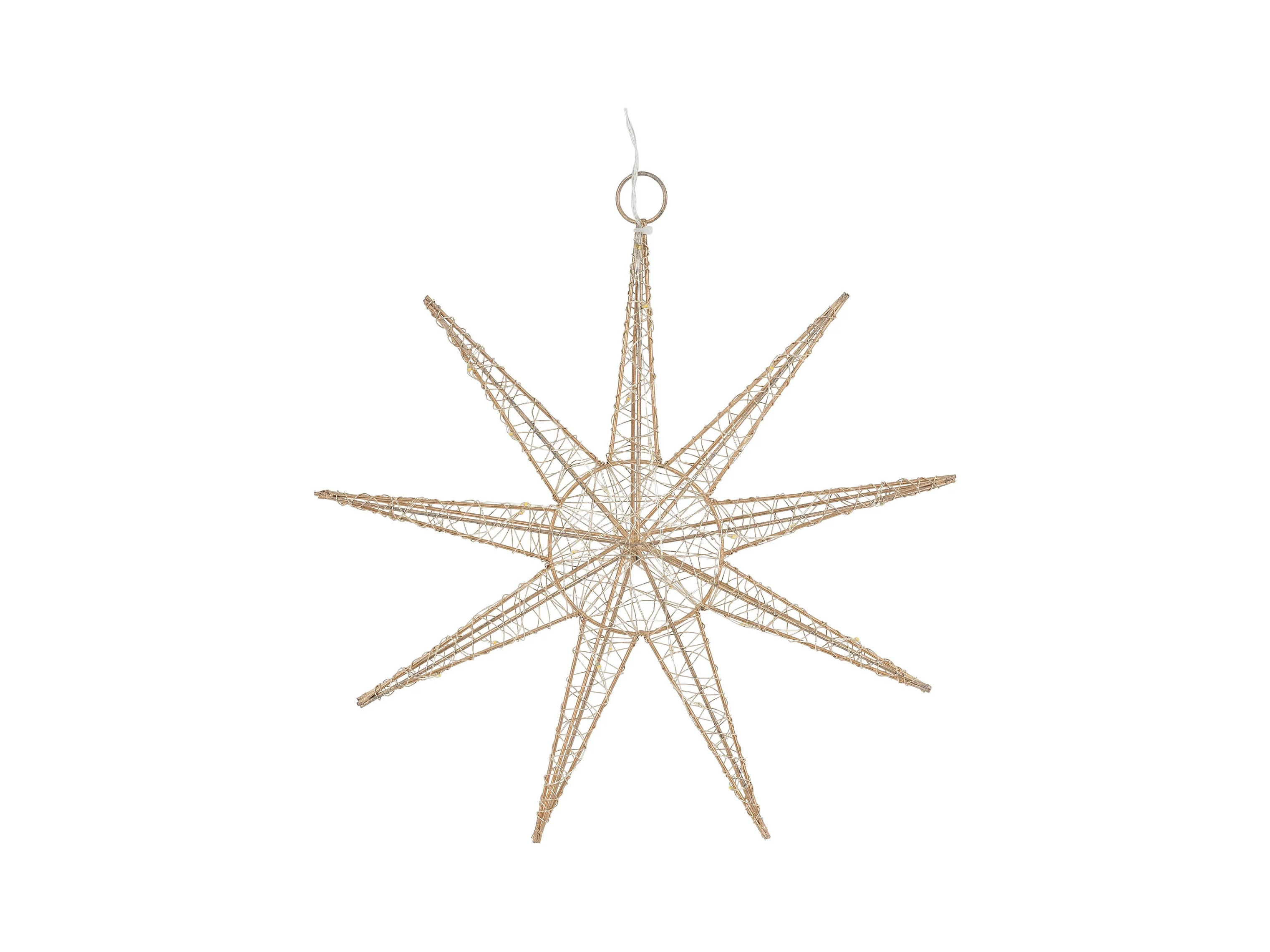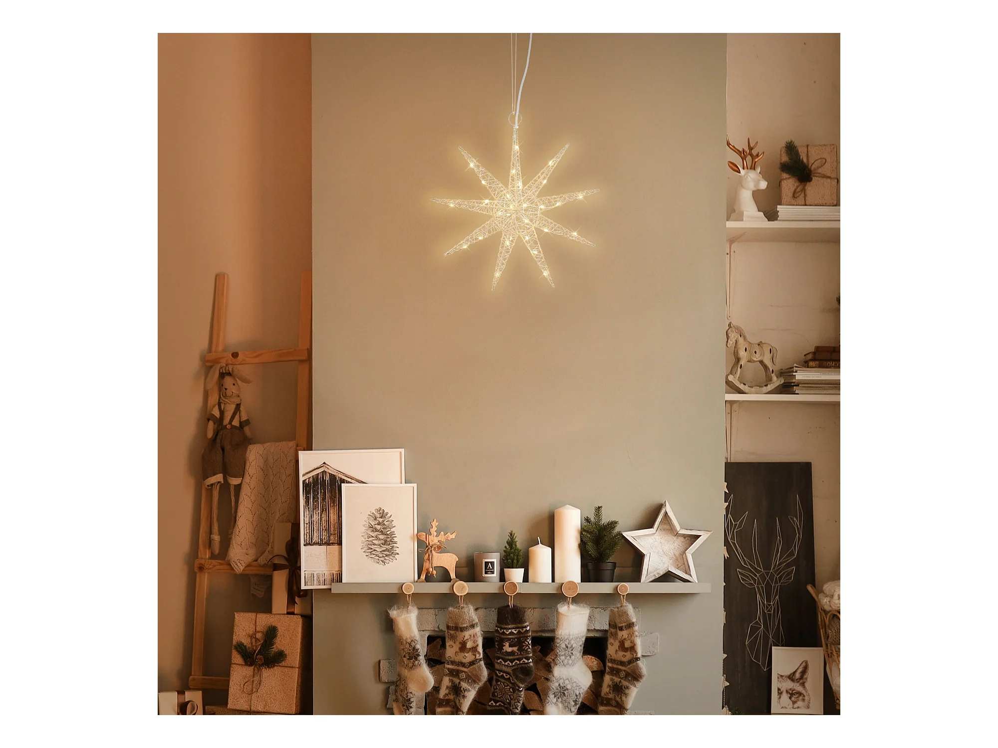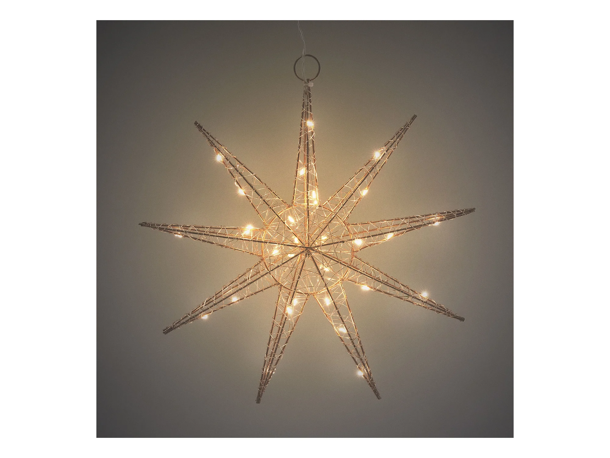 Étoile de noël décorative à suspendre 30 cm dorée avec 30 led blanc chaud en métal avec éclairage et minuterie à piles ornement de noël pour fenêtre