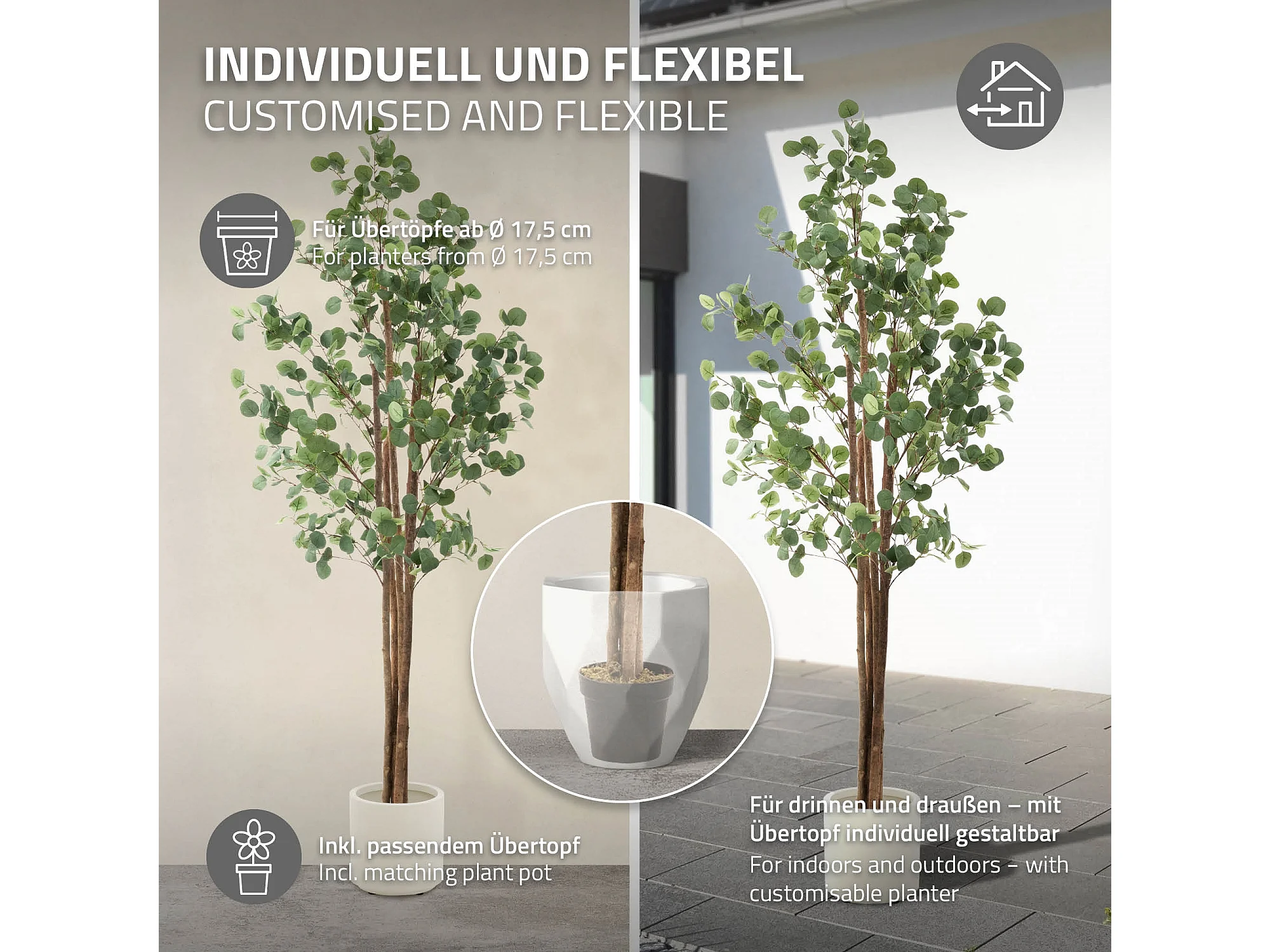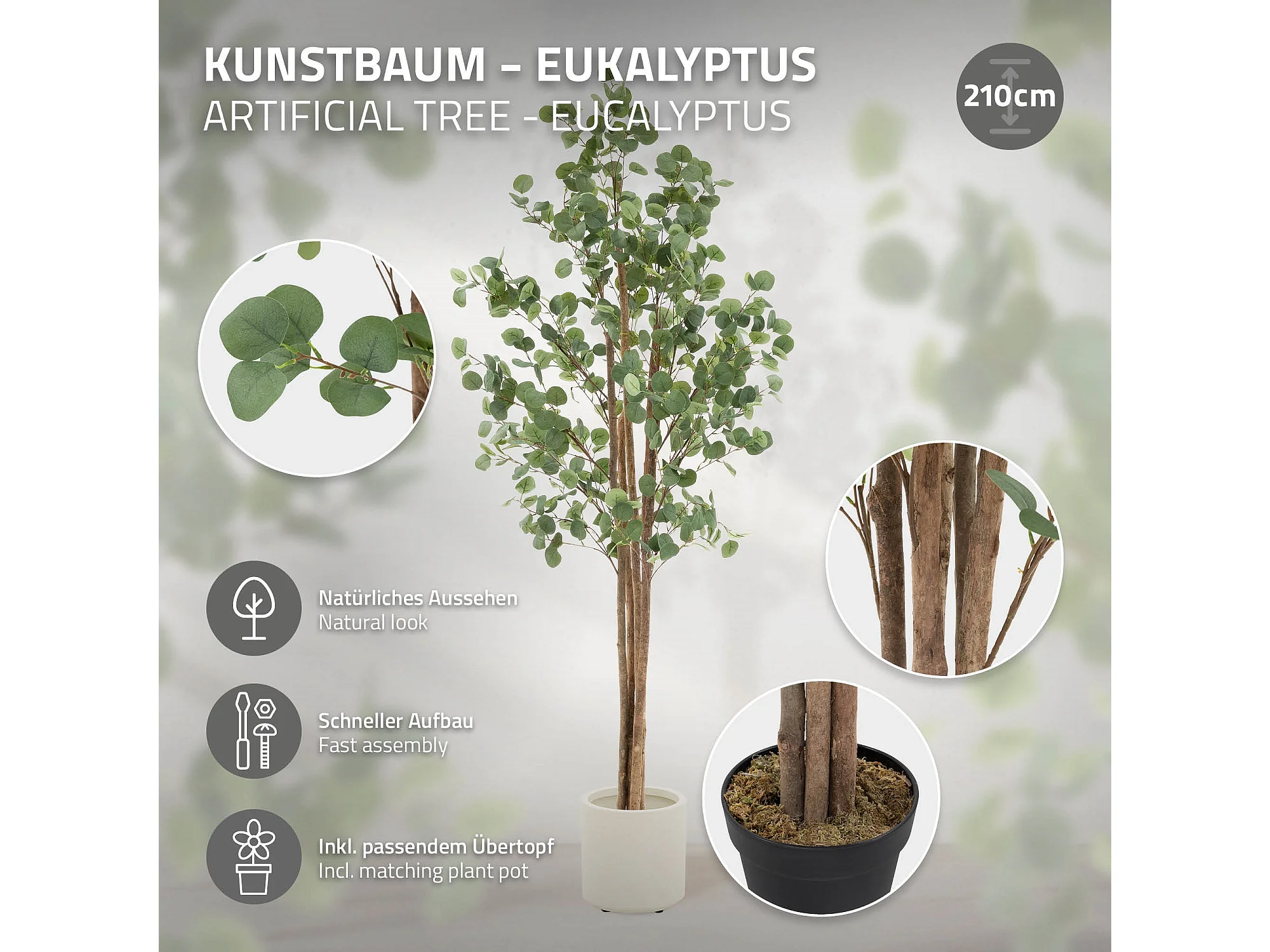 Eucalyptus artificiel plante avec tronc arbre en pot 210 cm déco de salon jardin