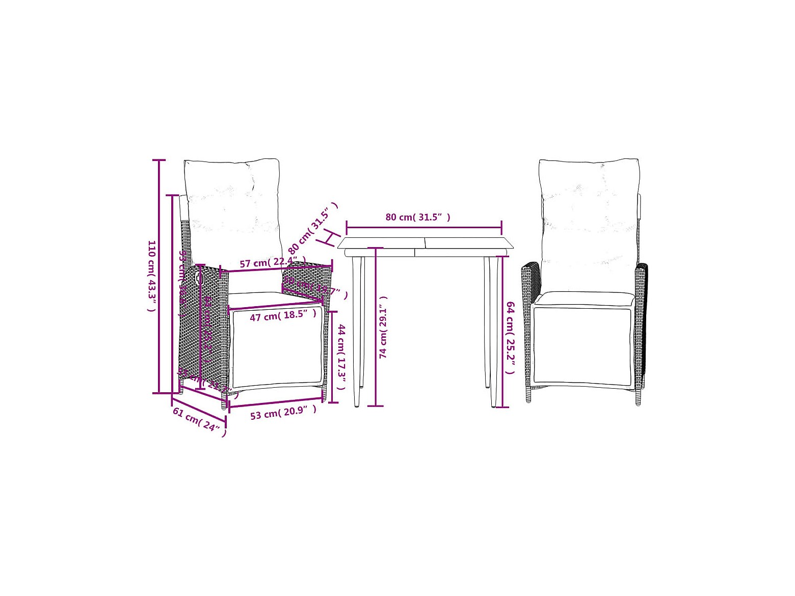 Eugenie Ensemble à manger de jardin 3 pcs coussins gris résine tressée