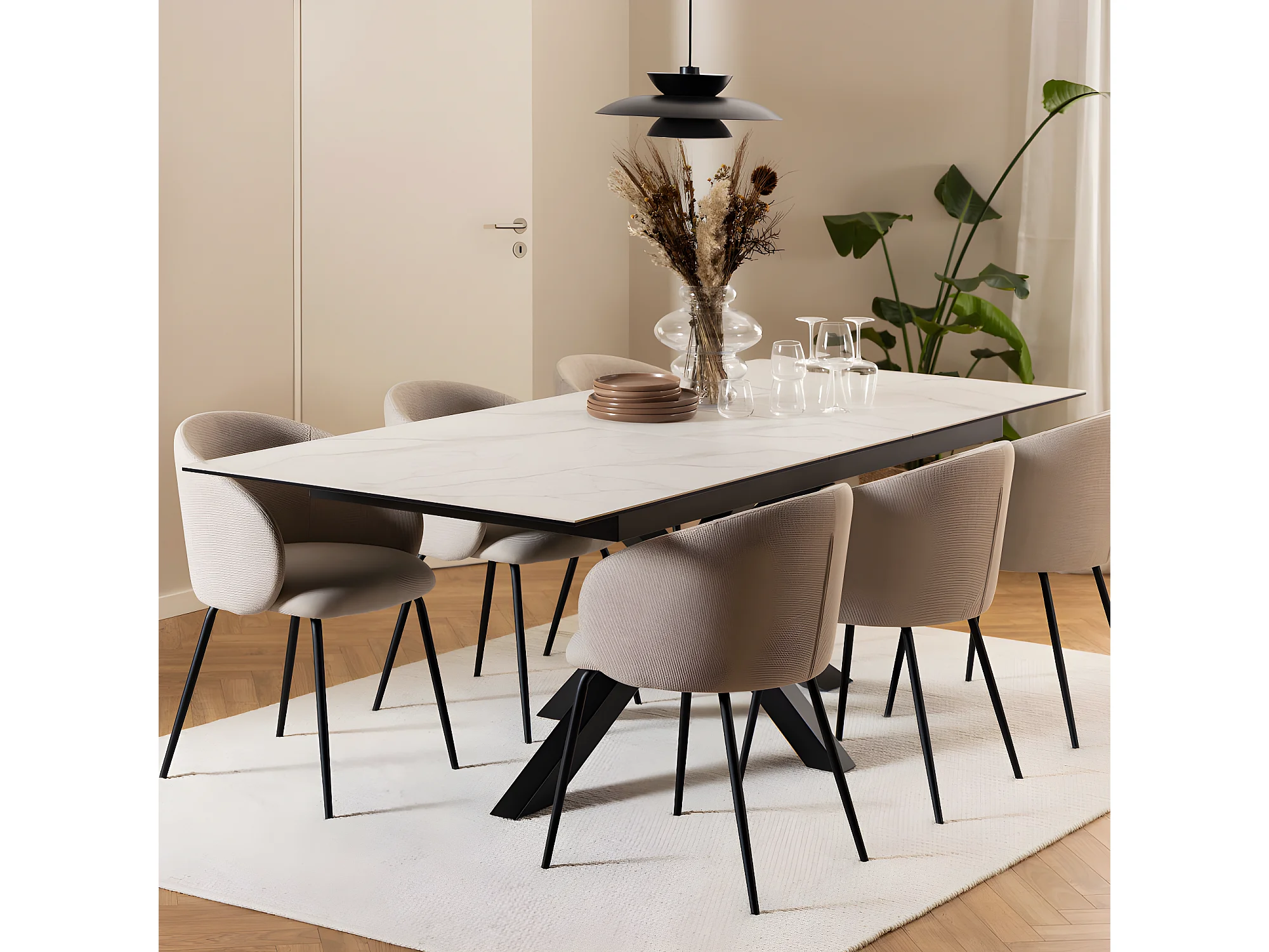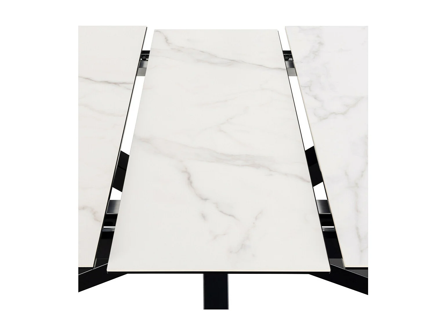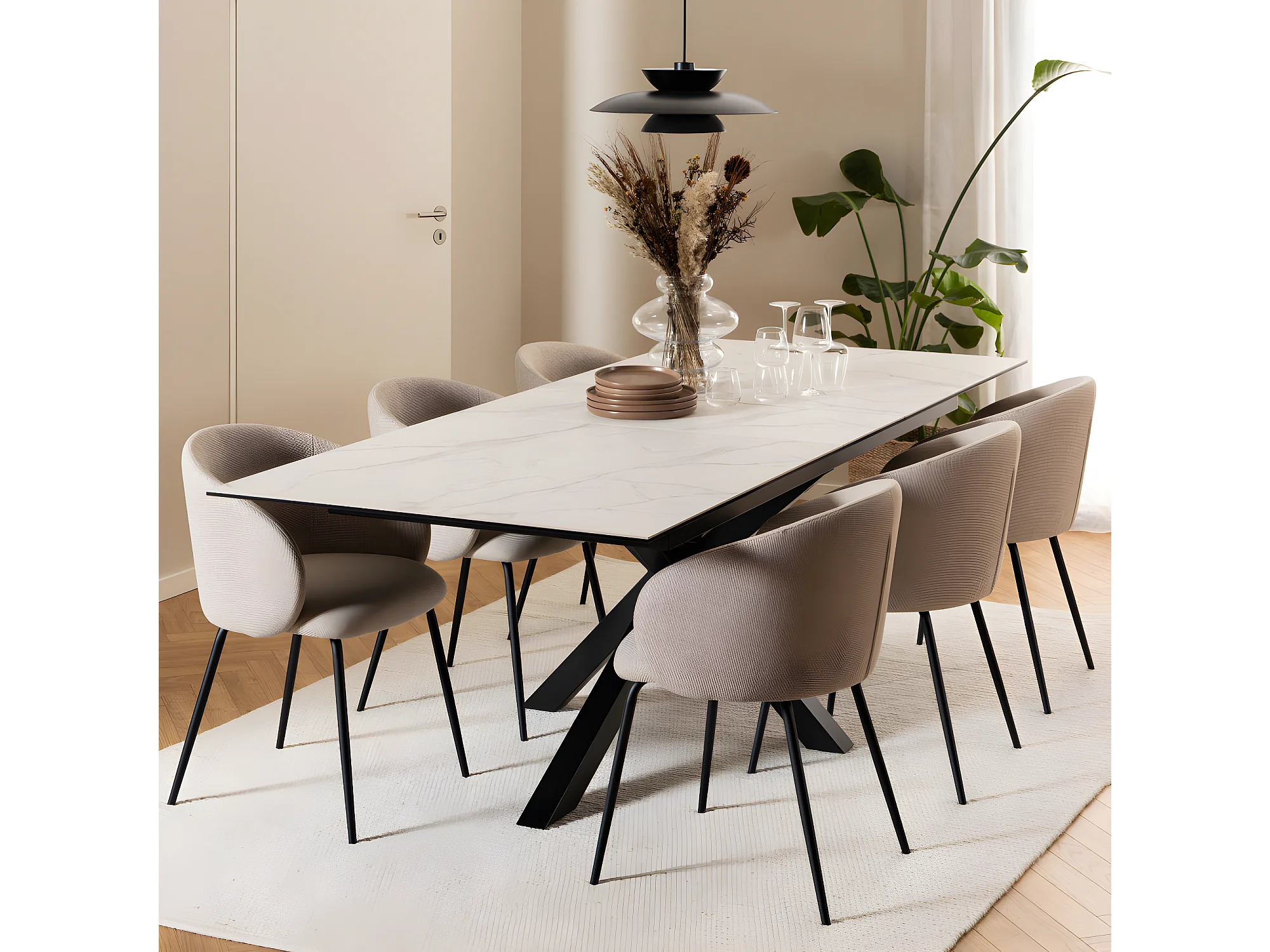 Eurame - Table à manger extensible 6 à 12 personnes en céramique et métal 200-240x100cm - Blanc