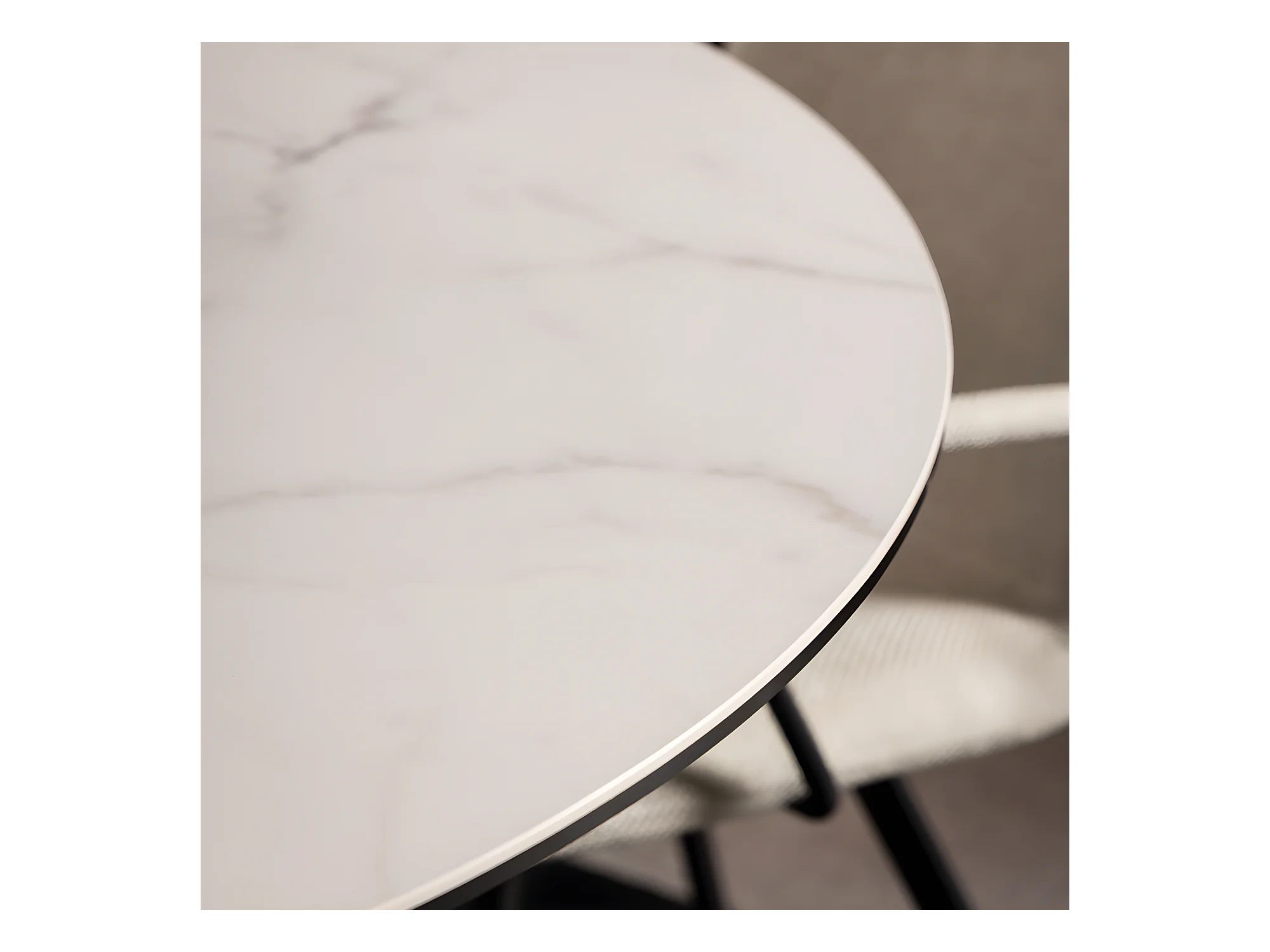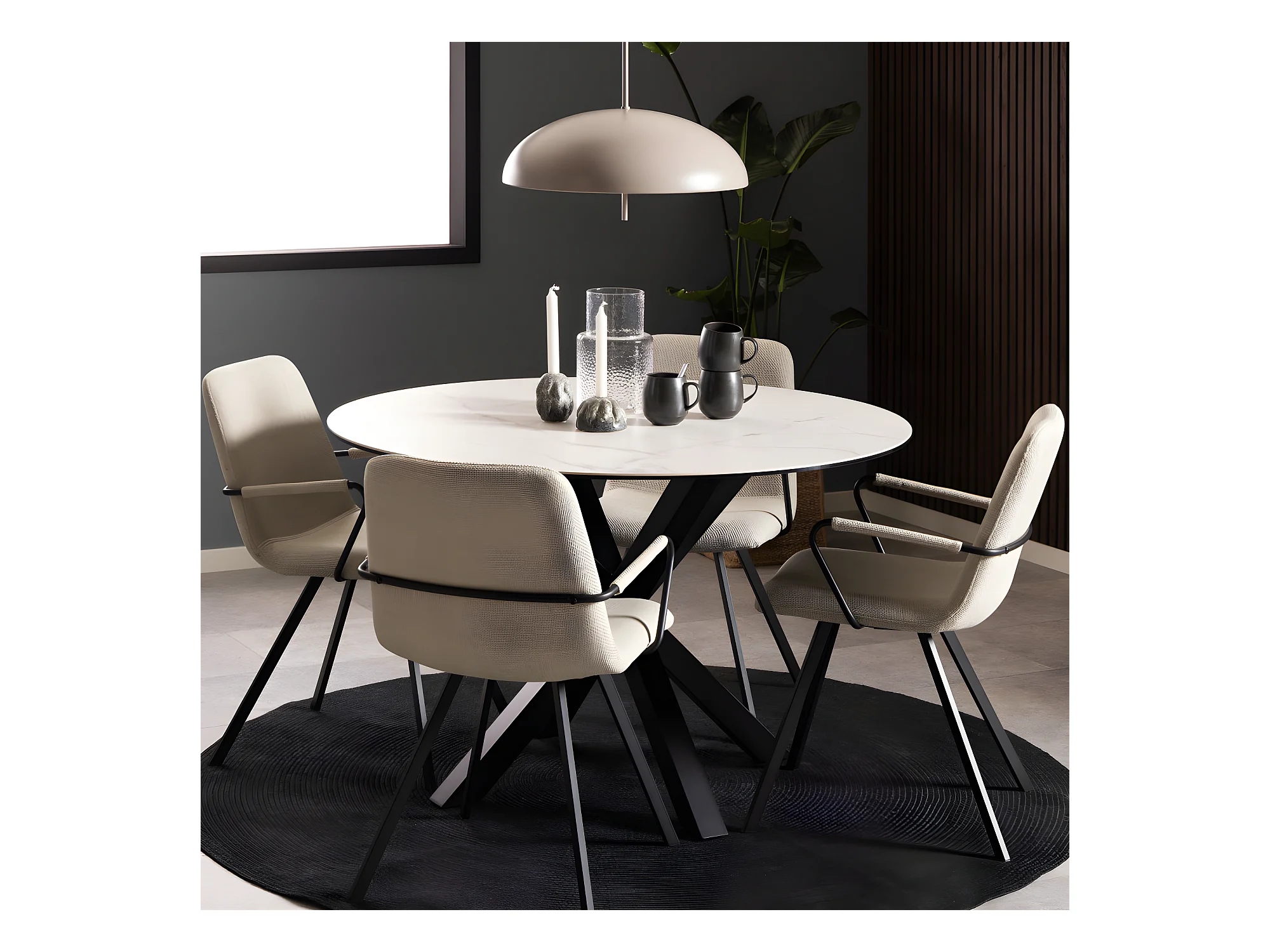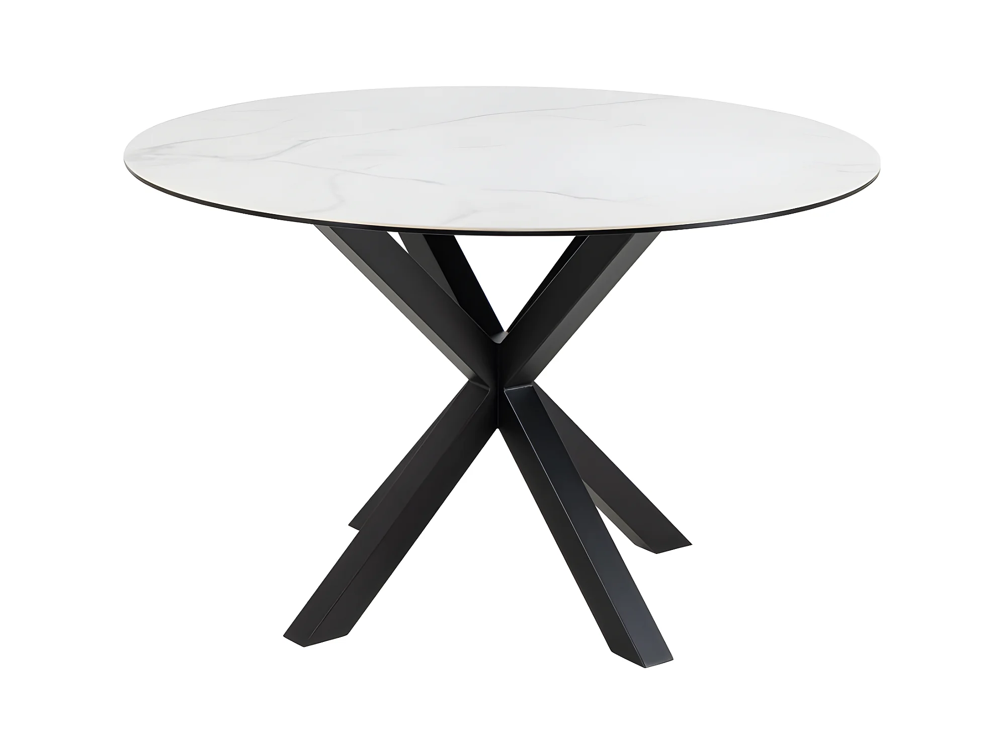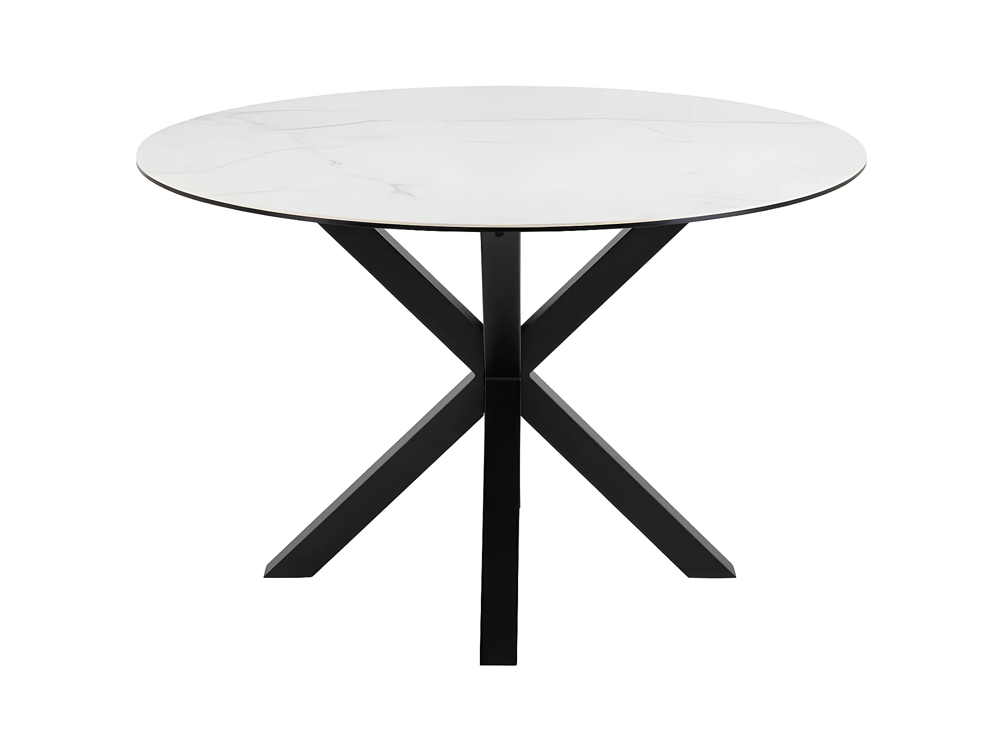 Eurame - Table à manger 4 personnes ronde en céramique et métal - Blanc