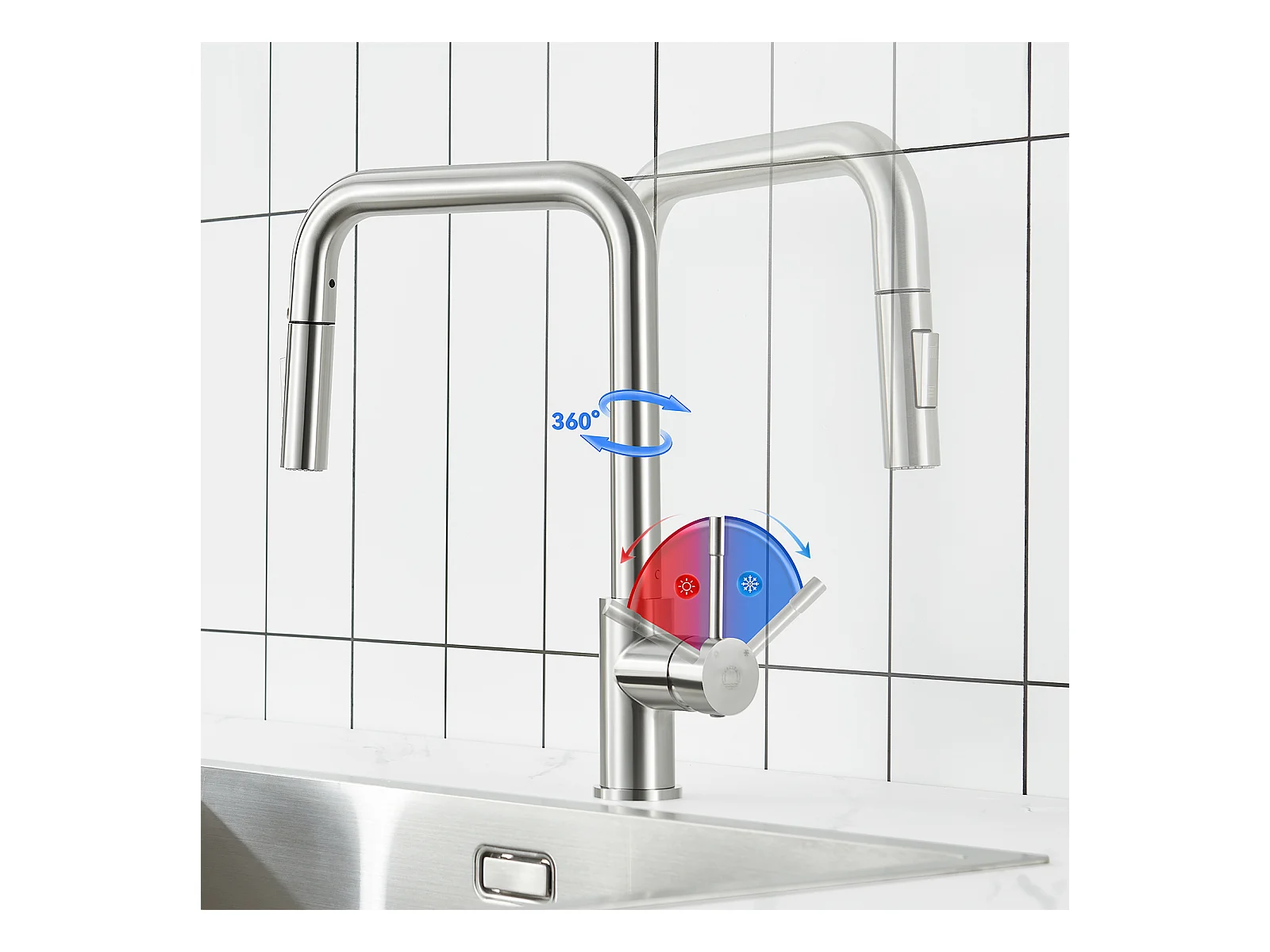 NETTLIFE robinet de cuisine robinet haute pression robinet d'évier de cuisine en acier inoxydable pivotant à 360°