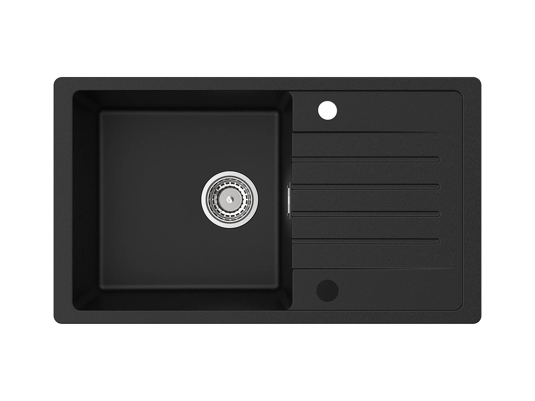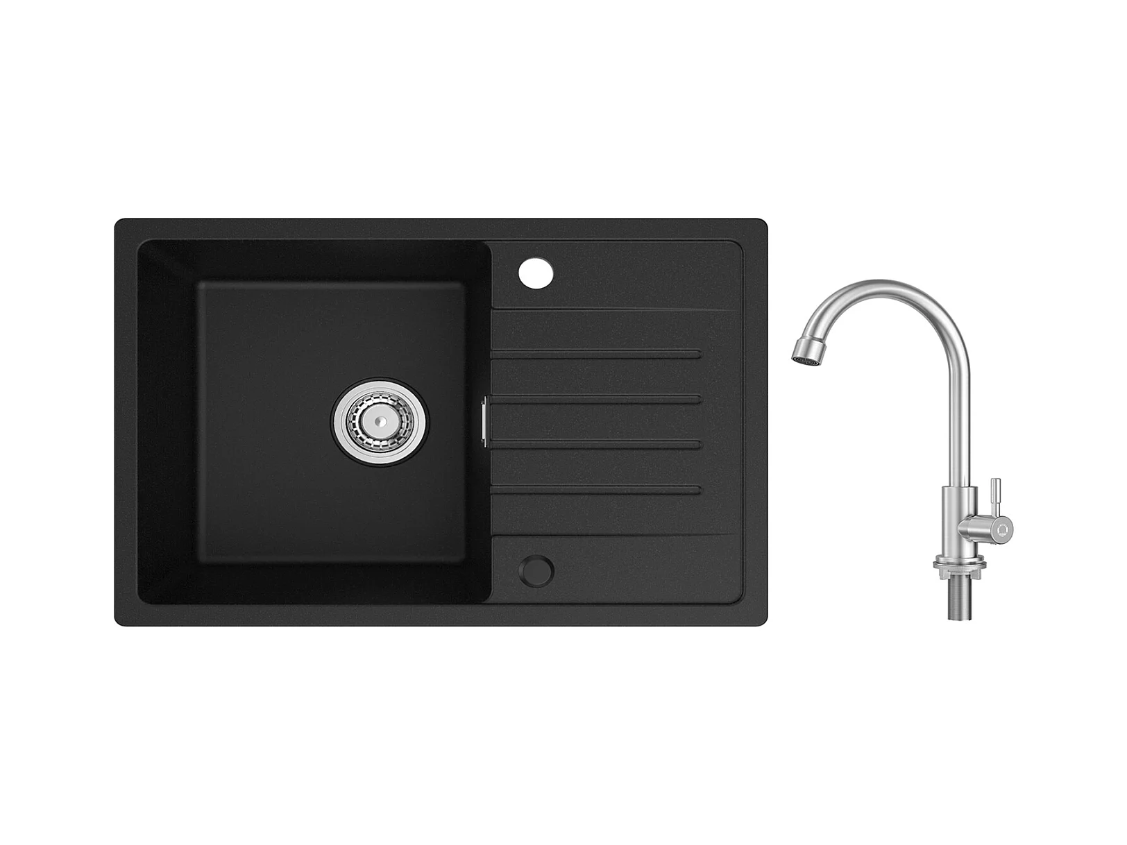 Evier 1 Bac en Quartz et Résine - Noir Evier avec Egouttoir 78x45cm + Robinet de Cuisine à eau Froide,Brossé