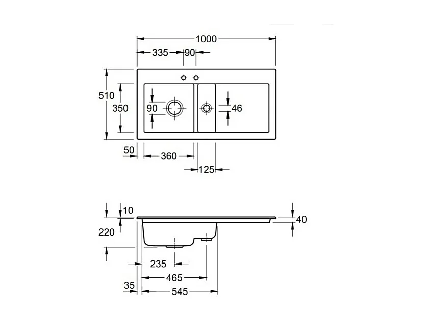 Evier 1 bac et demi avec egouttoir a droite VILLEROY ET BOCH Subway Pure 60 100 x 51 cm Blanc vidage automatique inclus