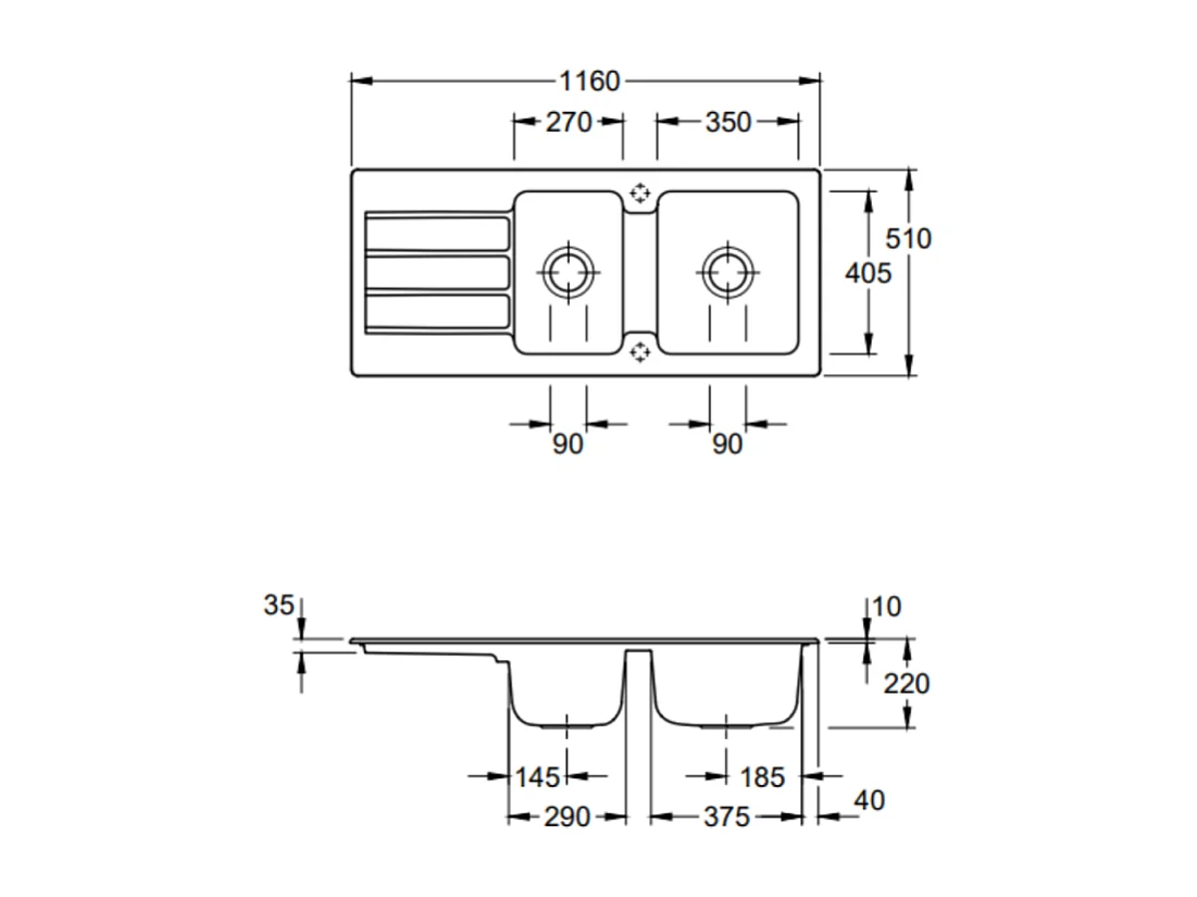 Evier 1 bac et demi VILLEROY ET BOCH Architectura 80 Noir