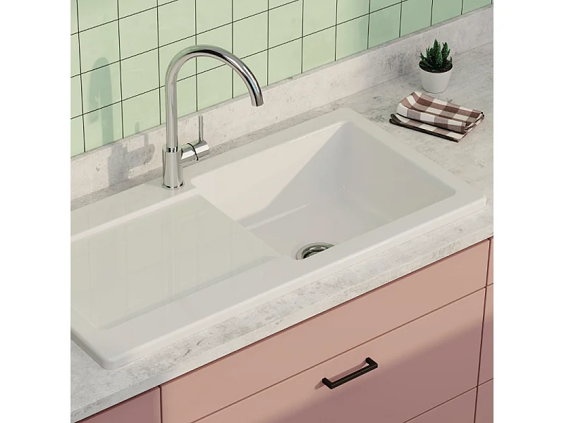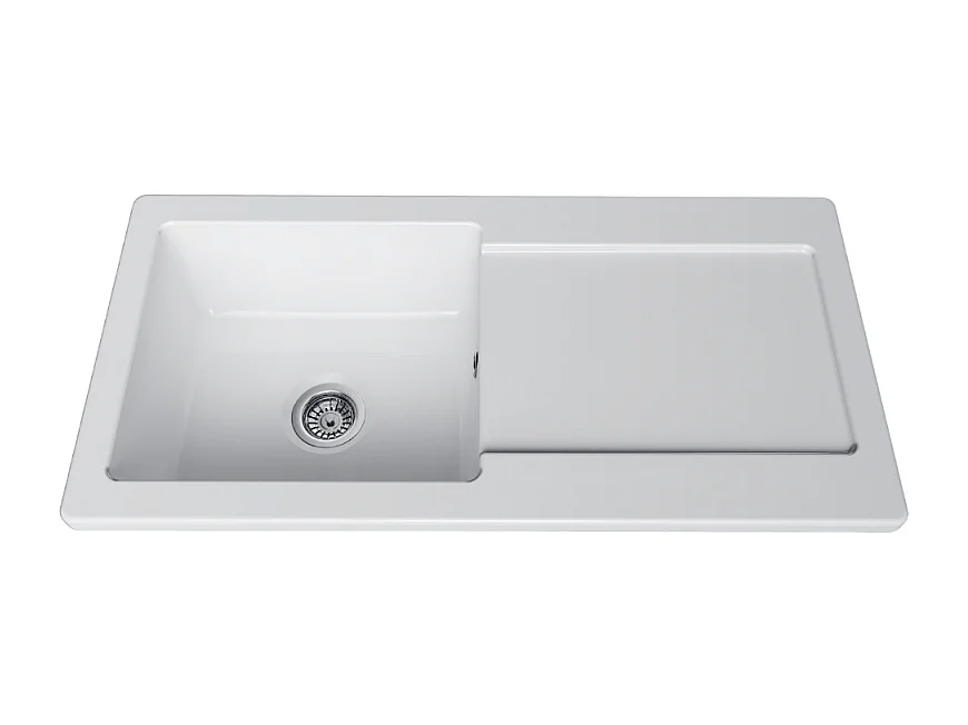 Evier 1 cuve avec égouttoir et vidage manuel VITRA Arkitekt blanc