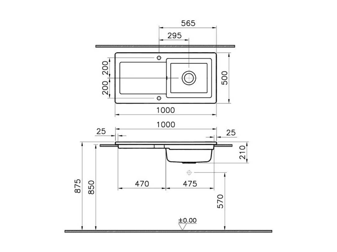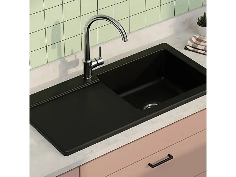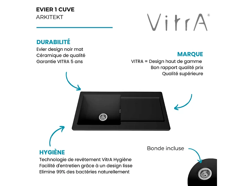 Evier 1 cuve avec égouttoir et vidage manuel VITRA Arkitekt noir mat