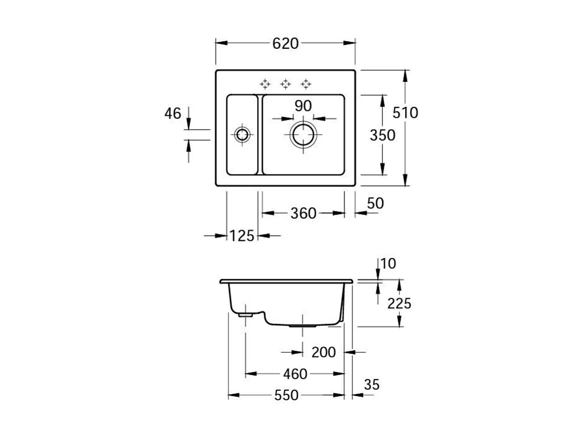 Evier 1 cuve et demi VILLEROY ET BOCH Subway 60 XM 62 x 51 cm sans egouttoir Fossile CeramicPlus avec vidage automatique