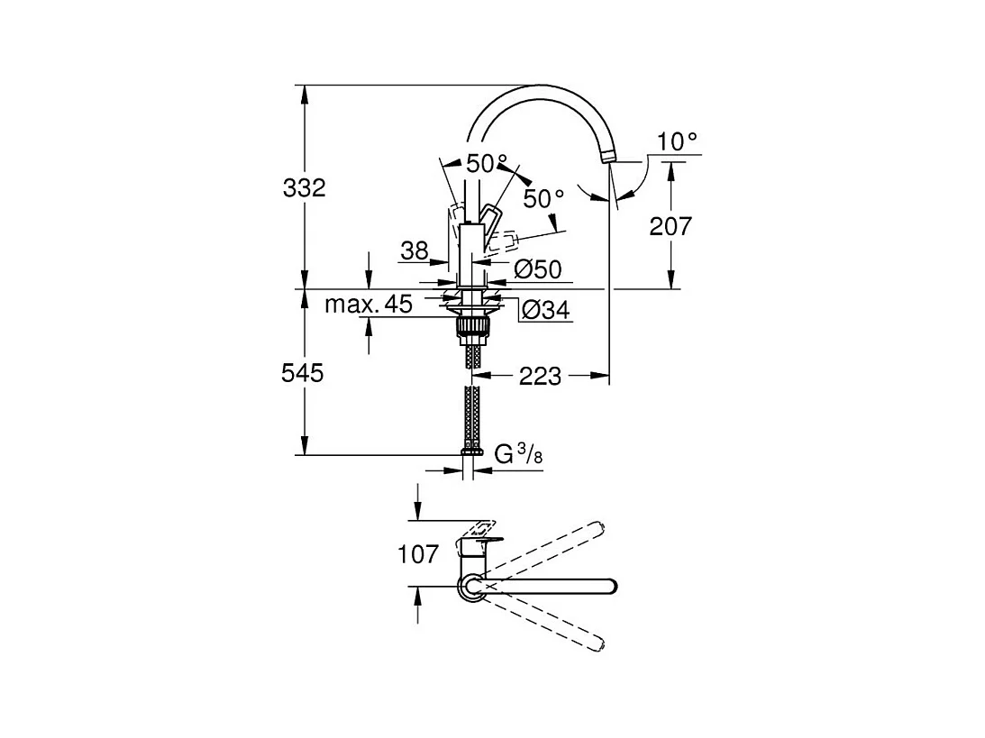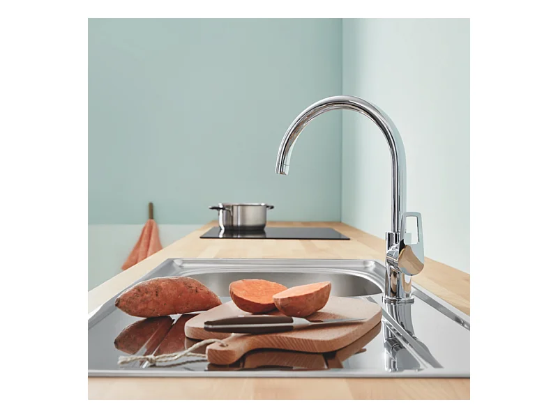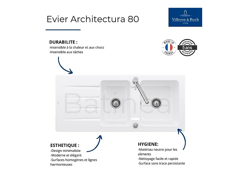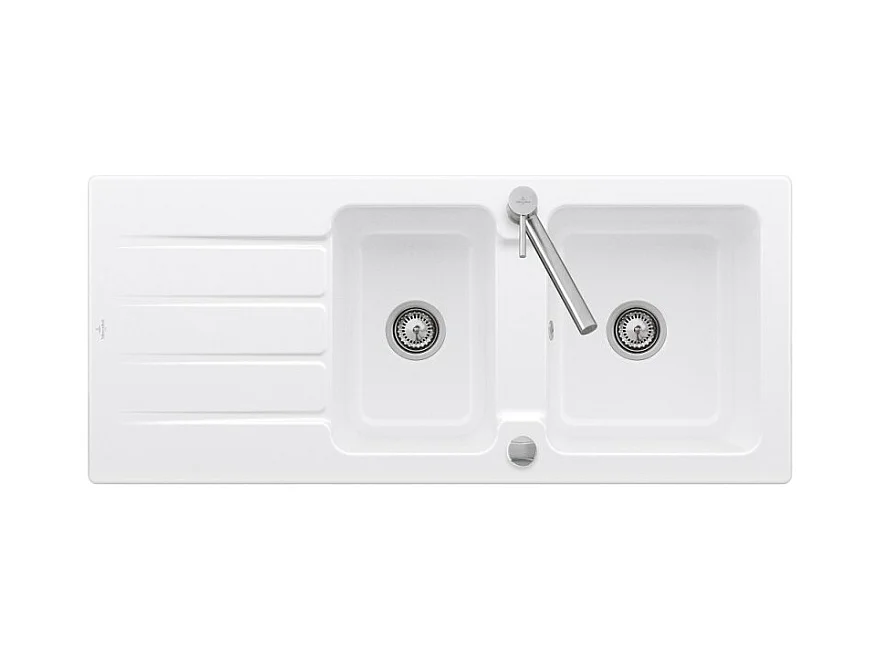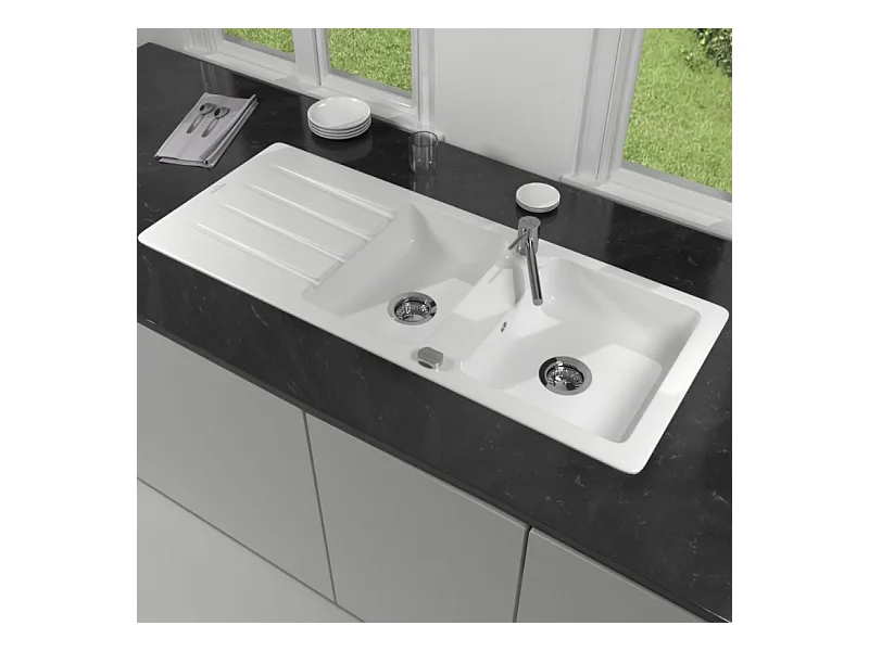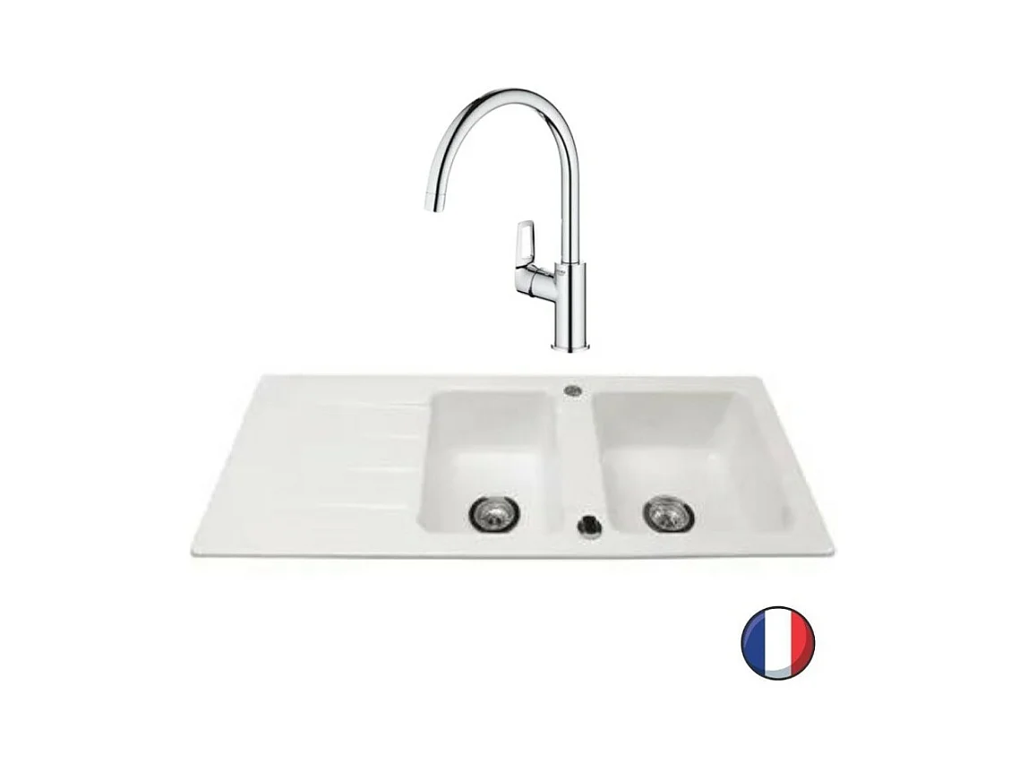 Evier 1 bac et demi 116 x 51 cm VILLEROY ET BOCH Architectura 8 Blanc + Robinet cuisine GROHE Bauloop