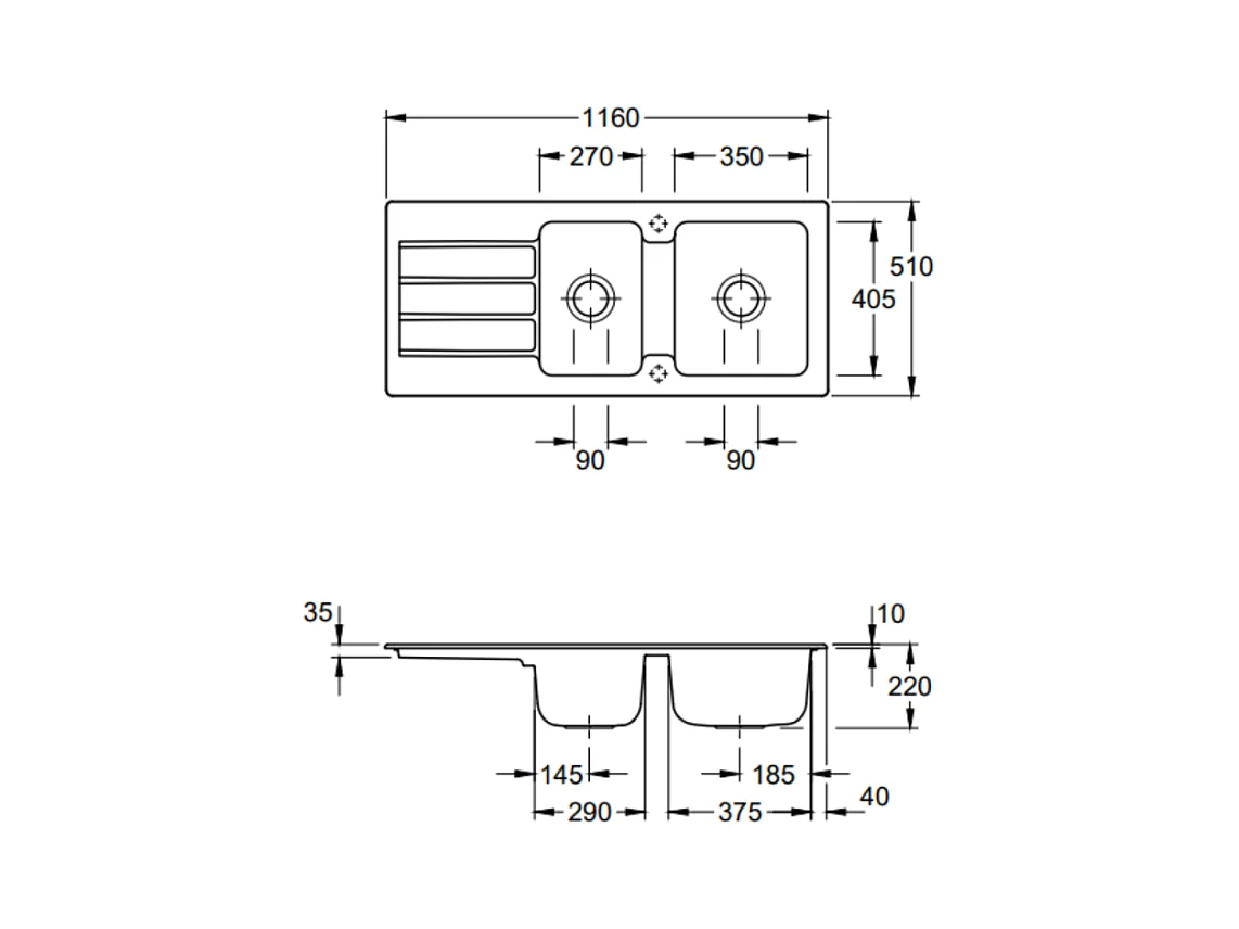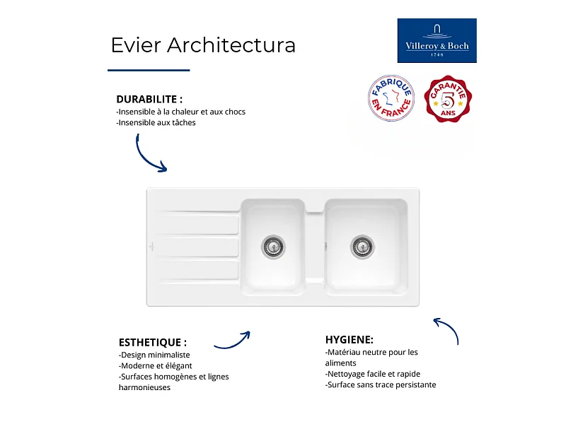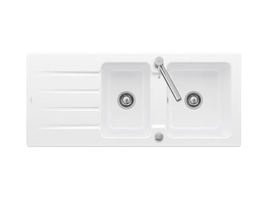 Evier 1 bac et demi 116 x 51 cm VILLEROY ET BOCH Architectura 80 Blanc vidage automatique inclus