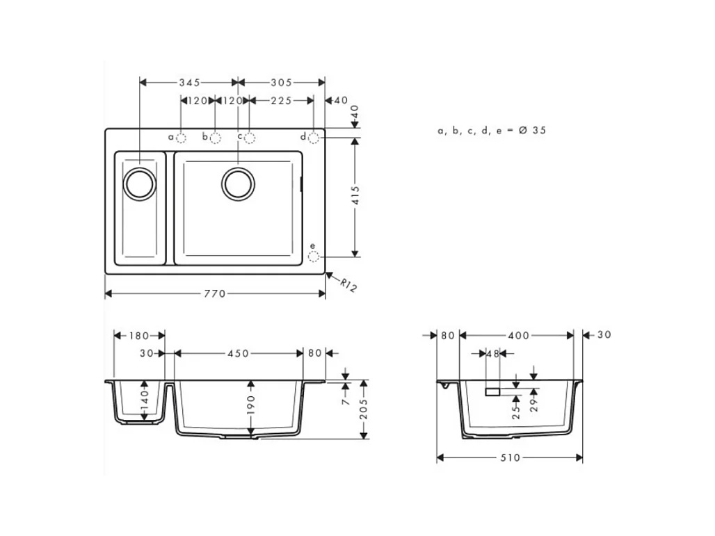 Evier à encastrer 1 bac et demi HANSGROHE S51 sans vidage noir graphite