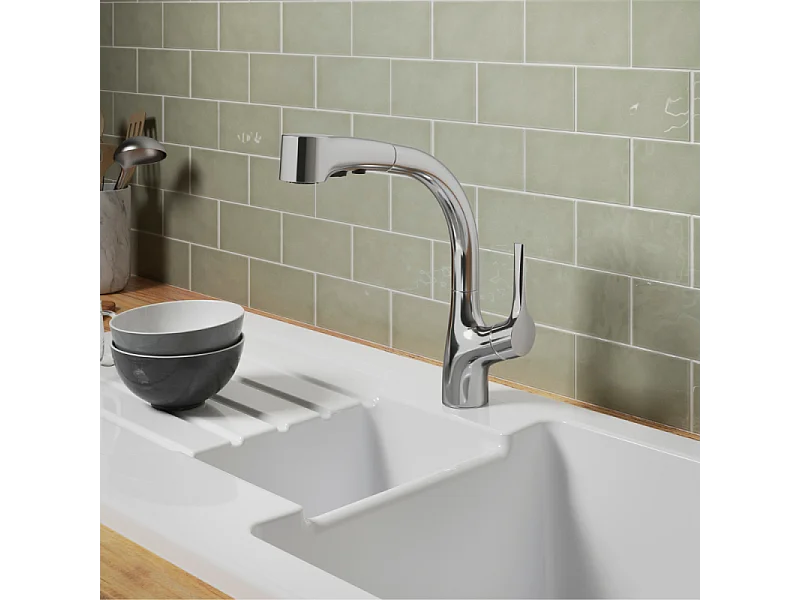 Evier à encastrer 1 bac et demi JACOB DELAFON Gaspard + robinet cuisine Elate