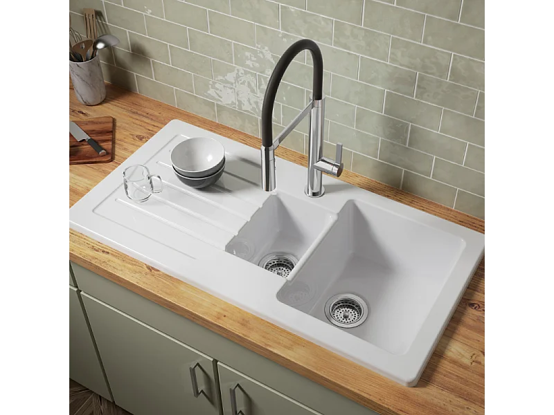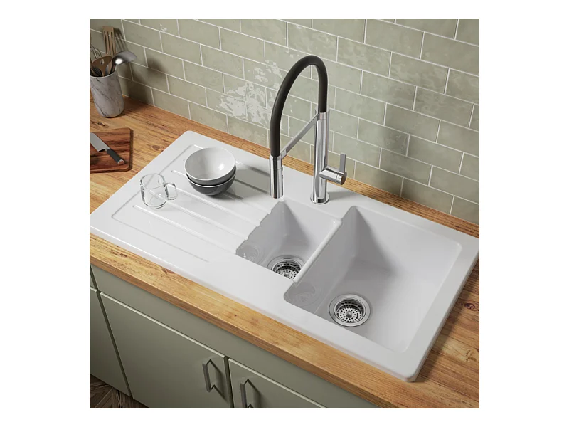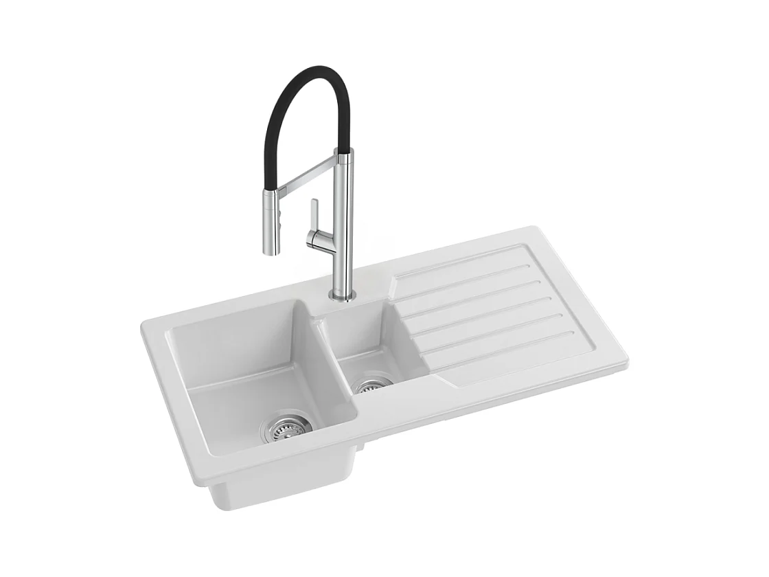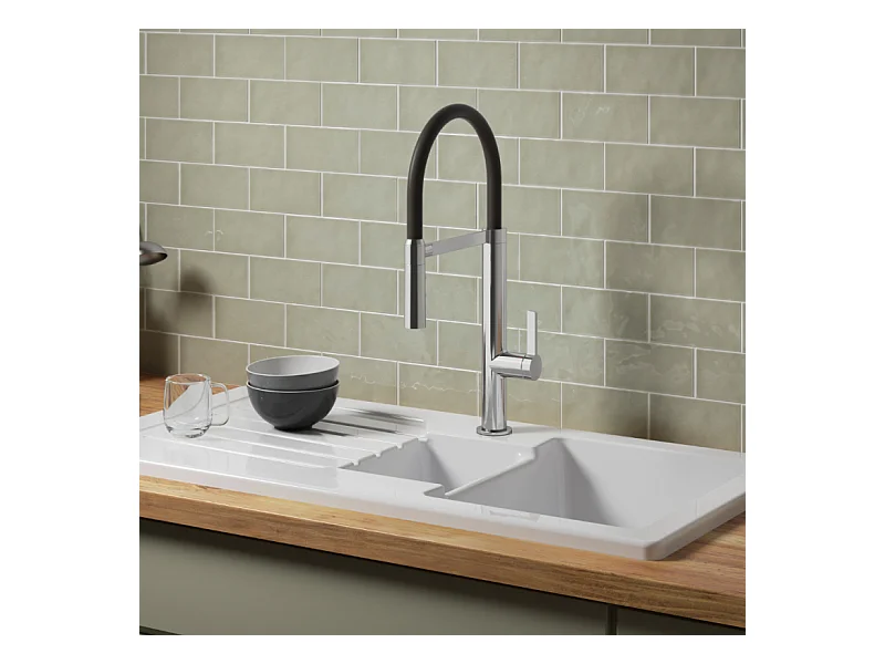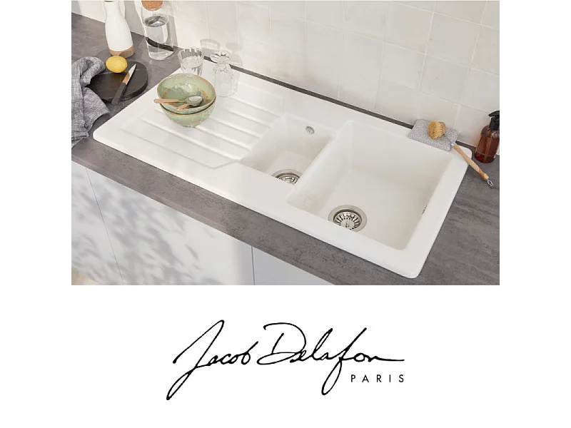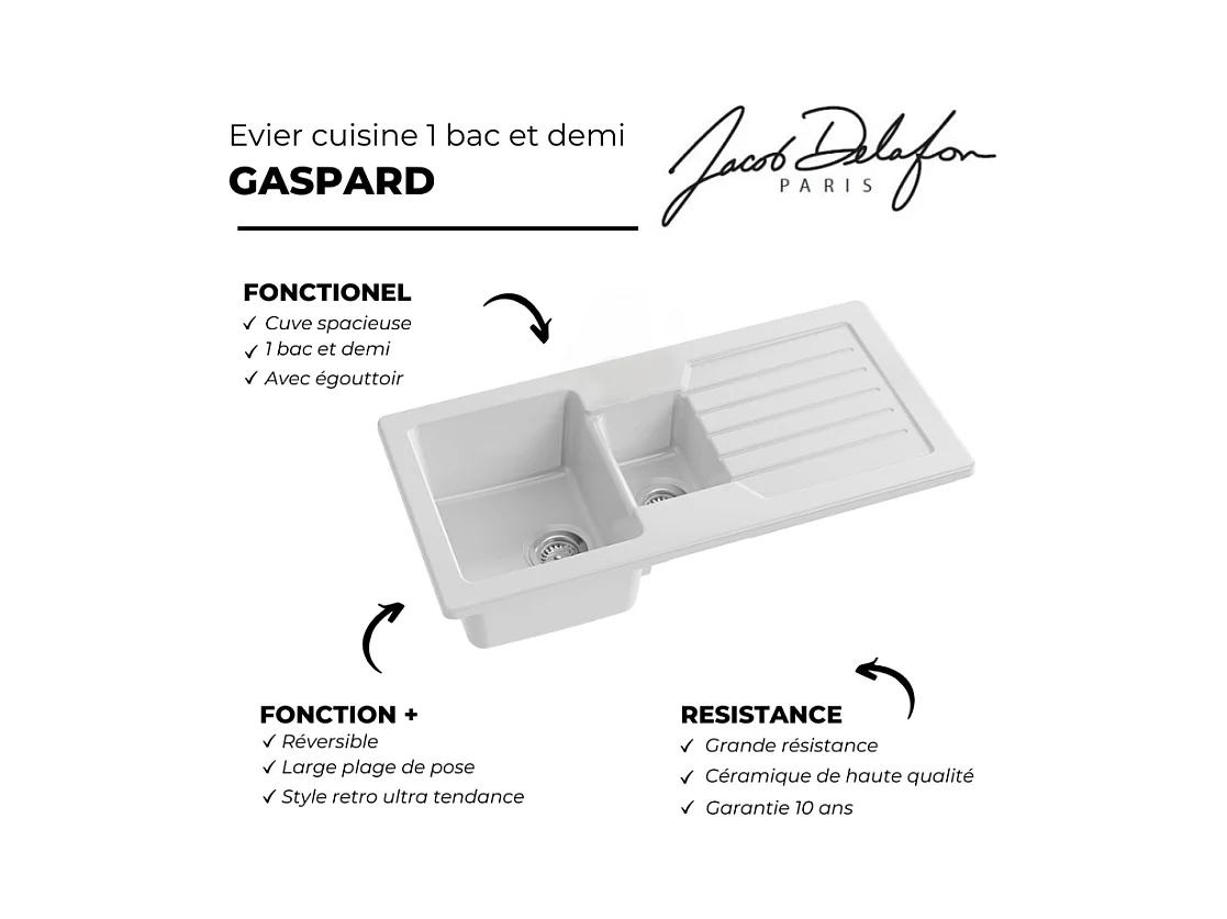 Evier à encastrer 1 bac et demi JACOB DELAFON Gaspard + robinet cuisine Raphaël