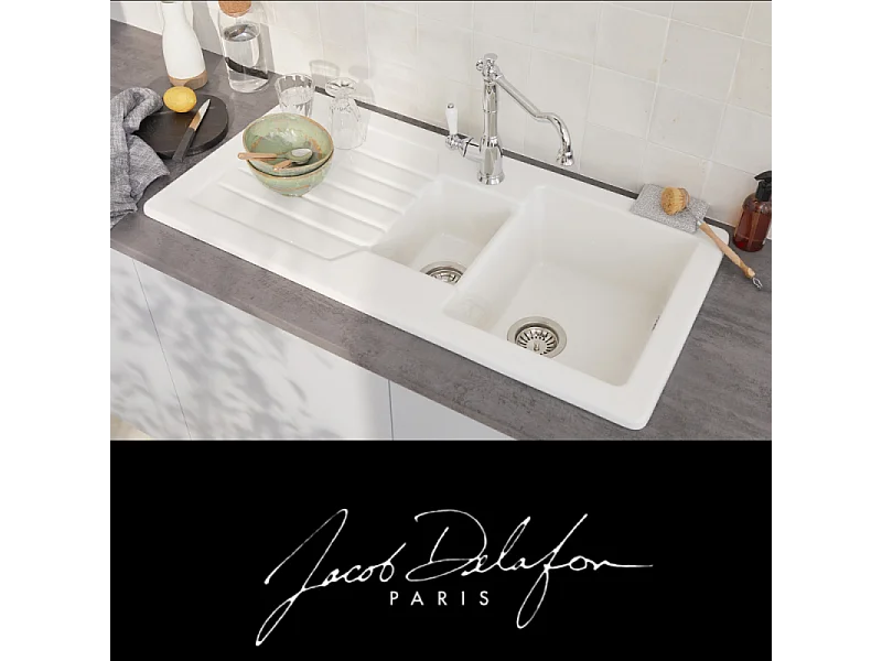 Evier à encastrer 1 bac et demi JACOB DELAFON Gaspard + robinet de cuisine Louise