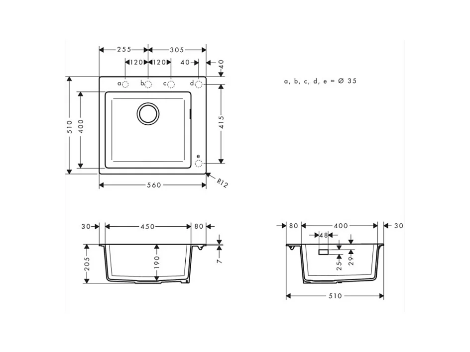 Evier à encastrer 1 bac HANSGROHE S51 450 avec vidage auto noir graphite