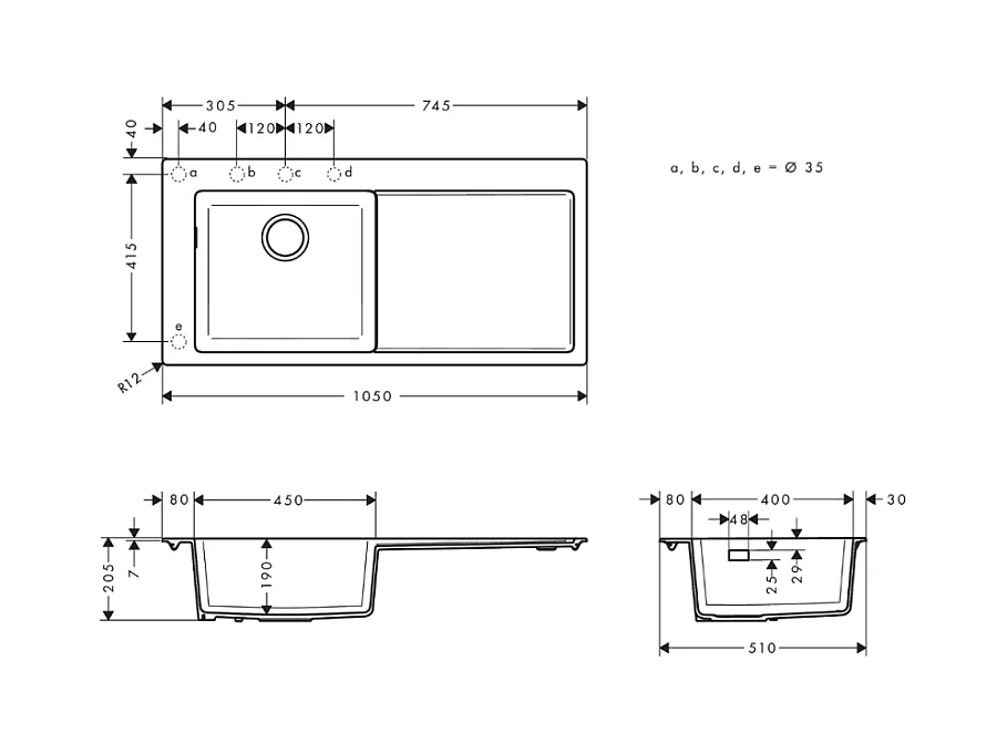 Evier à encastrer 1 bac HANSGROHE S51 450 égouttoir à droite avec vidage manuel noir graphite