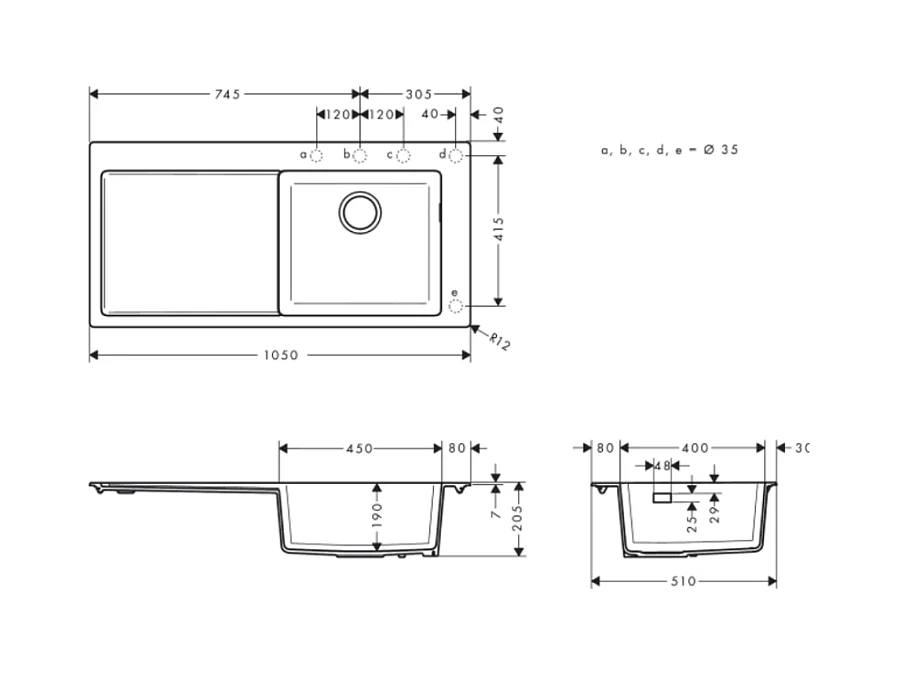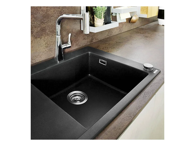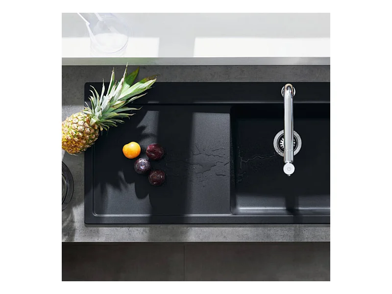 Evier à encastrer 1 bac HANSGROHE S51 450 égouttoir à gauche avec vidage manuel noir graphite