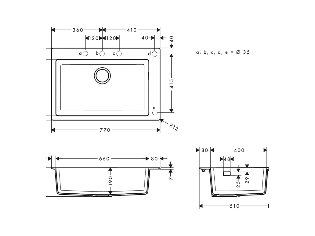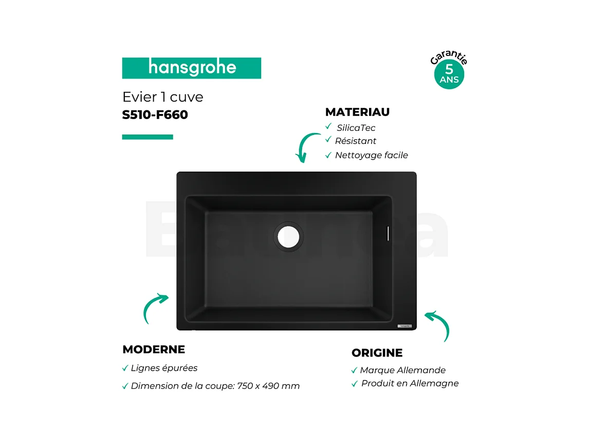 Evier à encastrer 1 bac HANSGROHE S51 660 sans vidage noir graphite