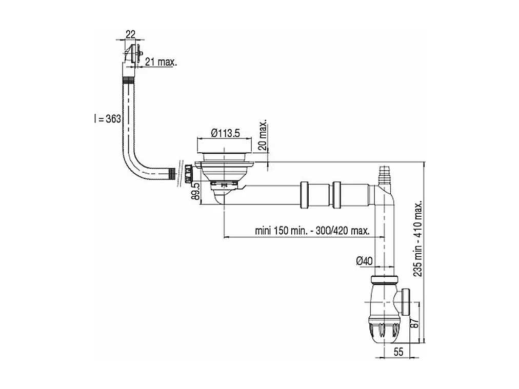 Evier à encastrer 1 bac JACOB DELAFON Gaspard avec système de vidage