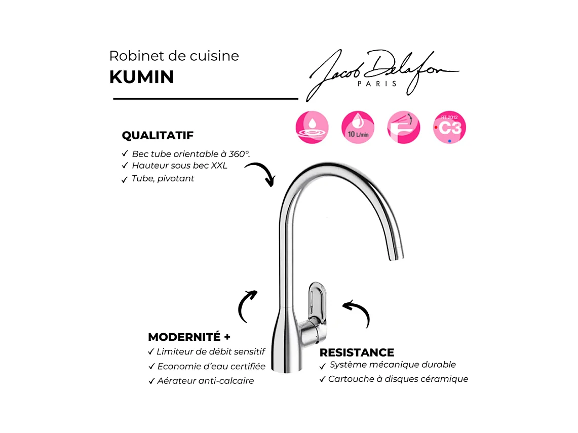 Evier à encastrer 1 bac JACOB DELAFON Gaspard + robinet cuisine Kumin