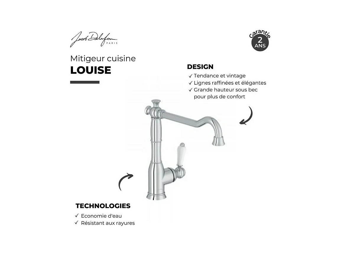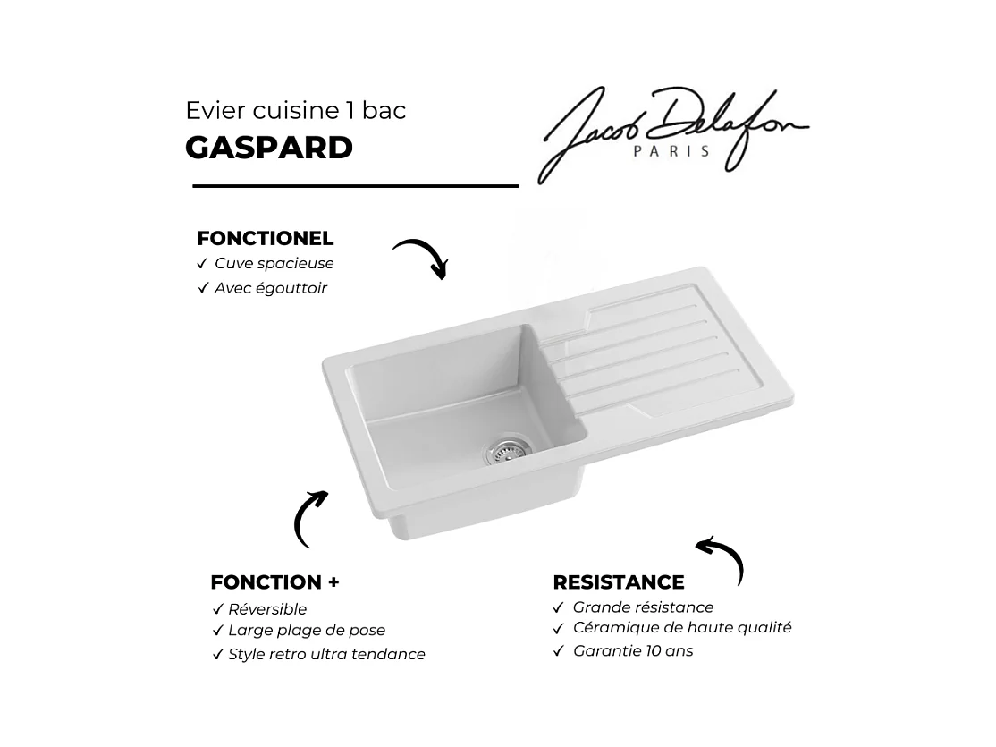 Evier à encastrer 1 bac JACOB DELAFON Gaspard + robinet cuisine Louise