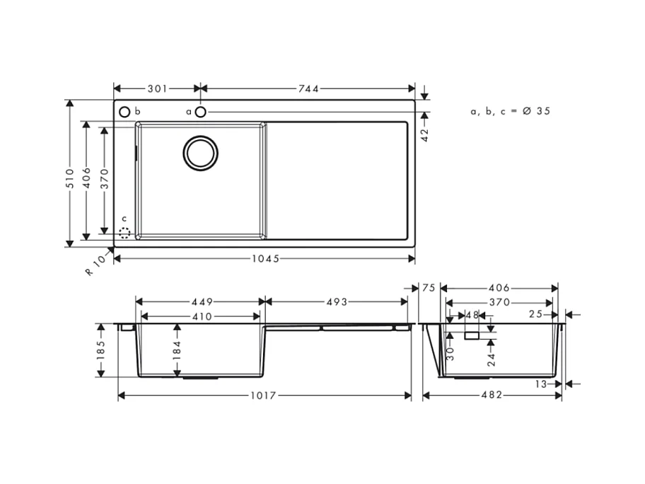 Evier à encastrer 1 bac pré-percé HANSGROHE S71 450 avec égouttoir à droite avec vidage auto inox