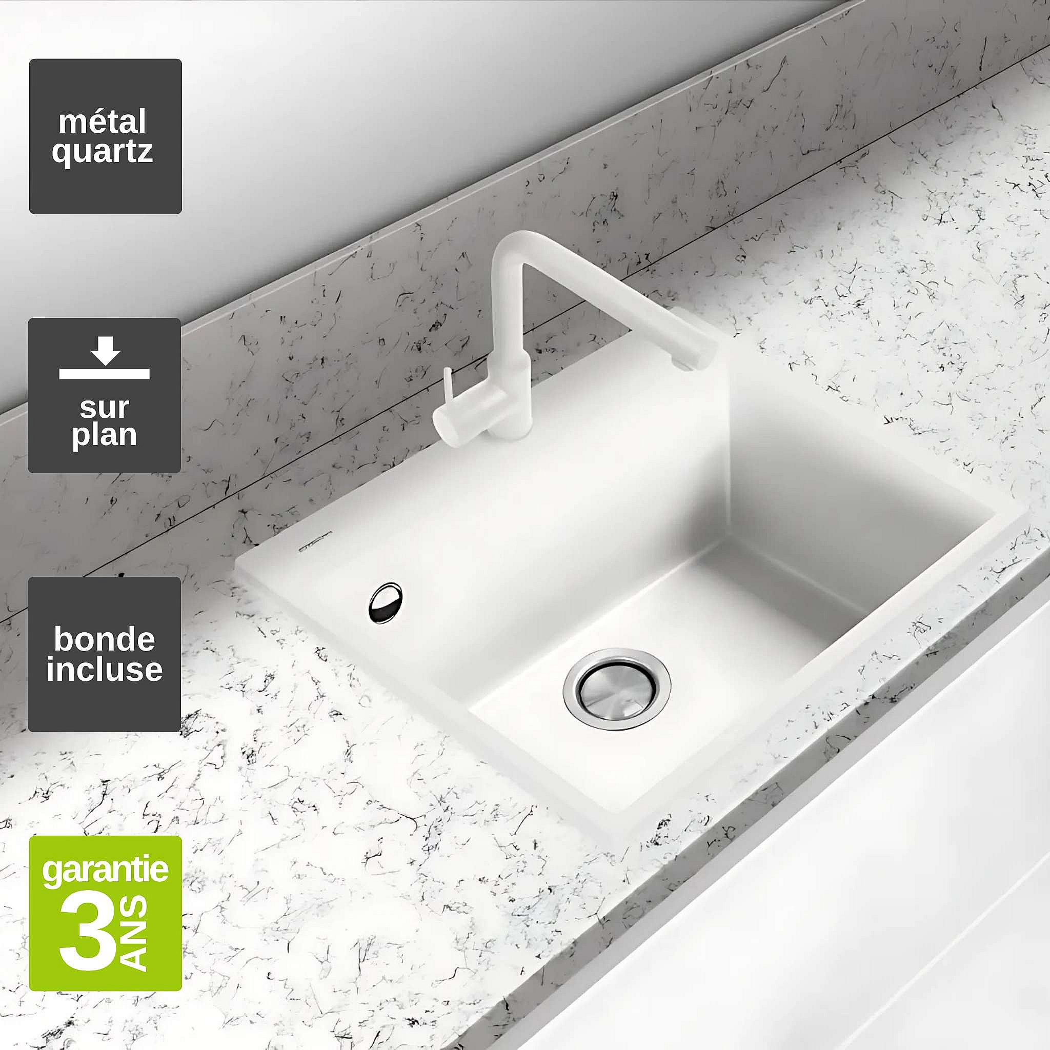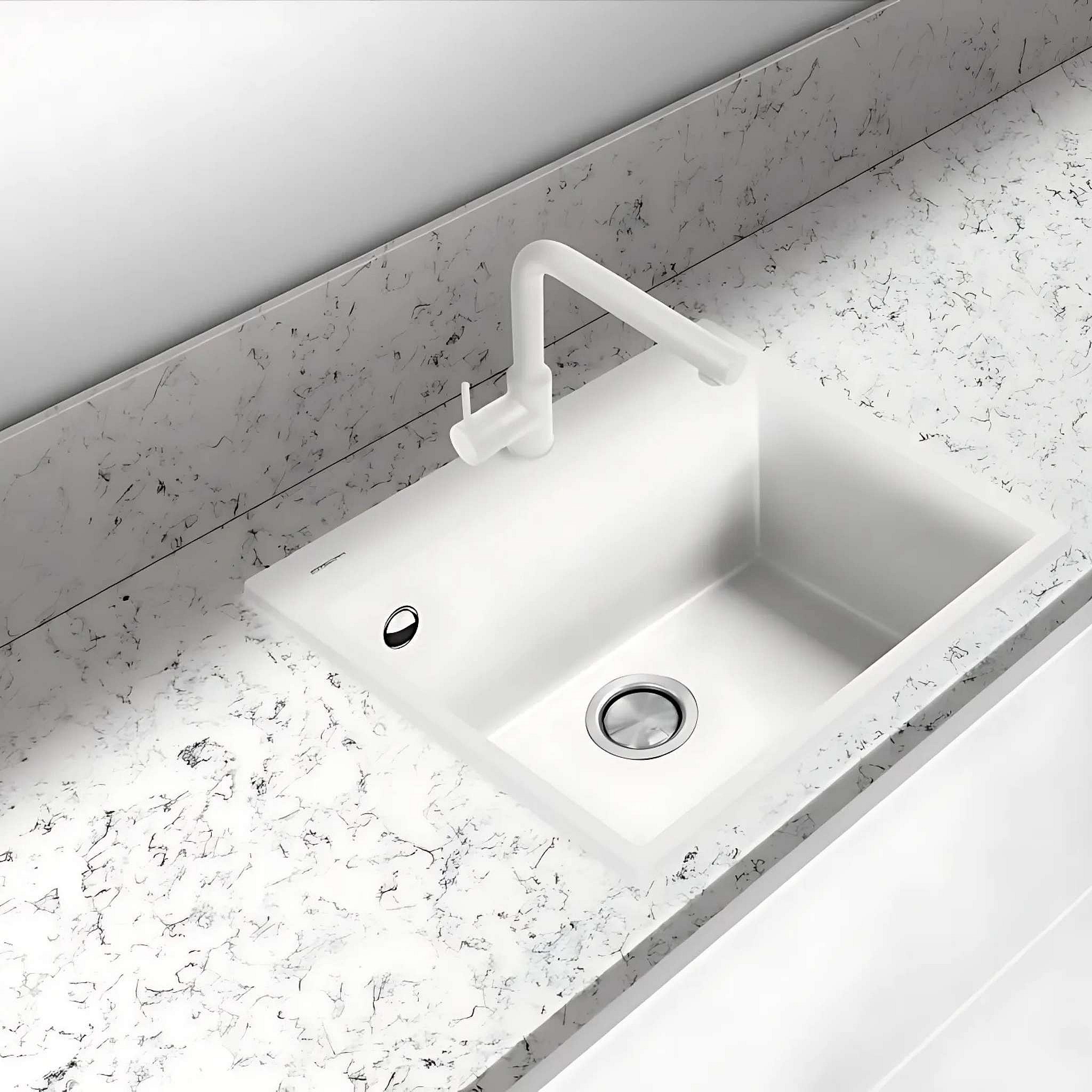 Évier à encastrer 1 Cuve 69x40x20cm - Quartz Blanc - Quadra SE FRÉCAN