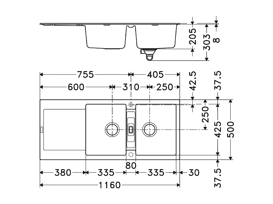 Evier à encastrer 2 bacs FRANKE Maris Fragranit avec vidage manuel Platinium