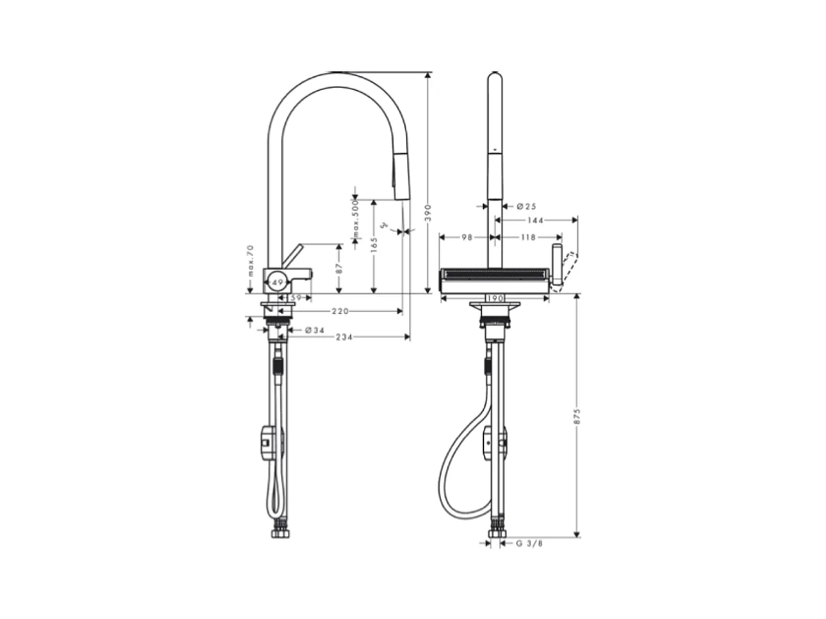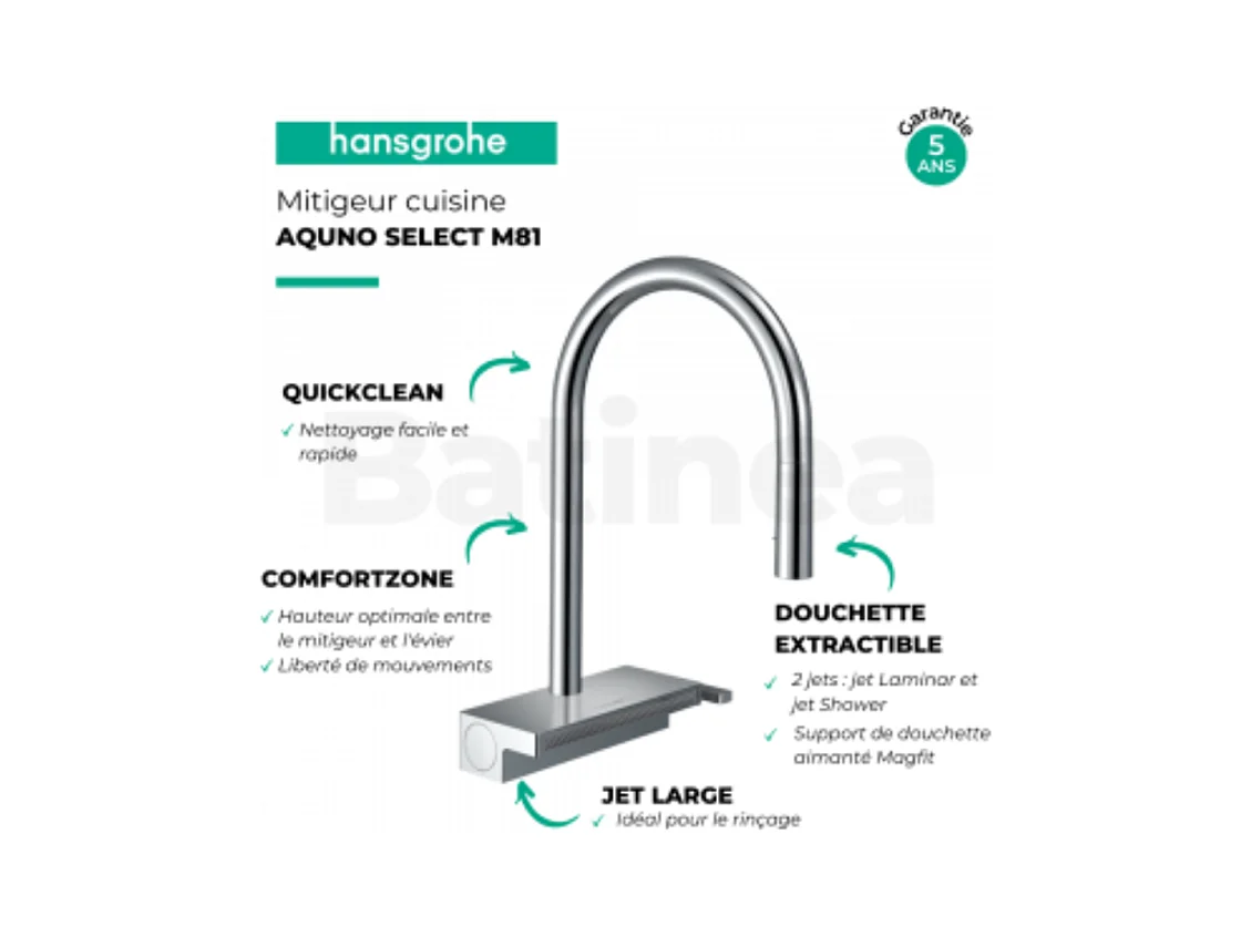 Evier à encastrer sous plan 1 bac HANSGROHE S719-U660 inox avec vidage auto + robinet cuisine Aquno Select M81 170 noir mat