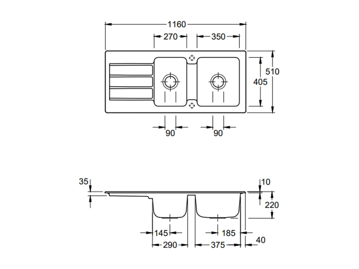 Evier 1 bac et demi Architectura VILLEROY ET BOCH 80 116 x 51 cm Blanc sans vidage