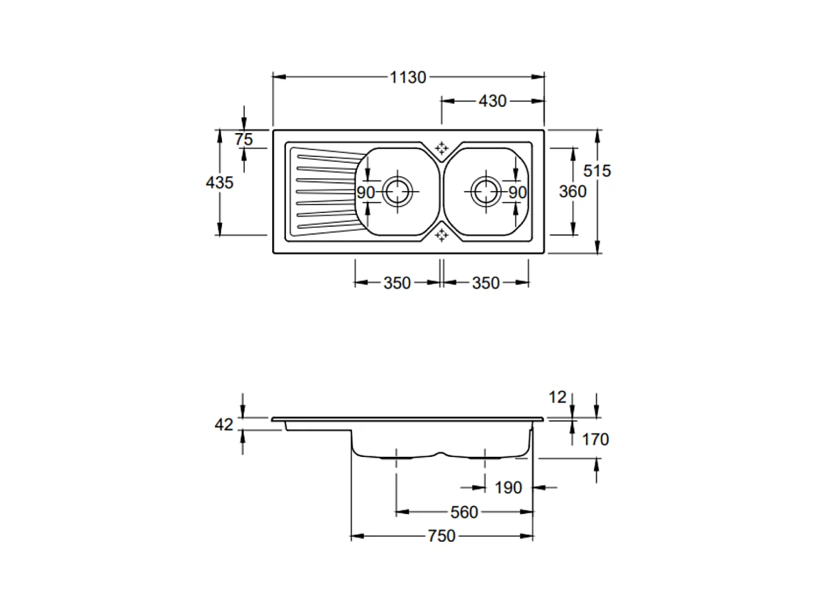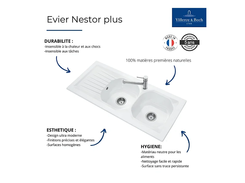 Evier céramique à encastrer 2 bacs 113x51cm VILLEROY ET BOCH Nestor plus