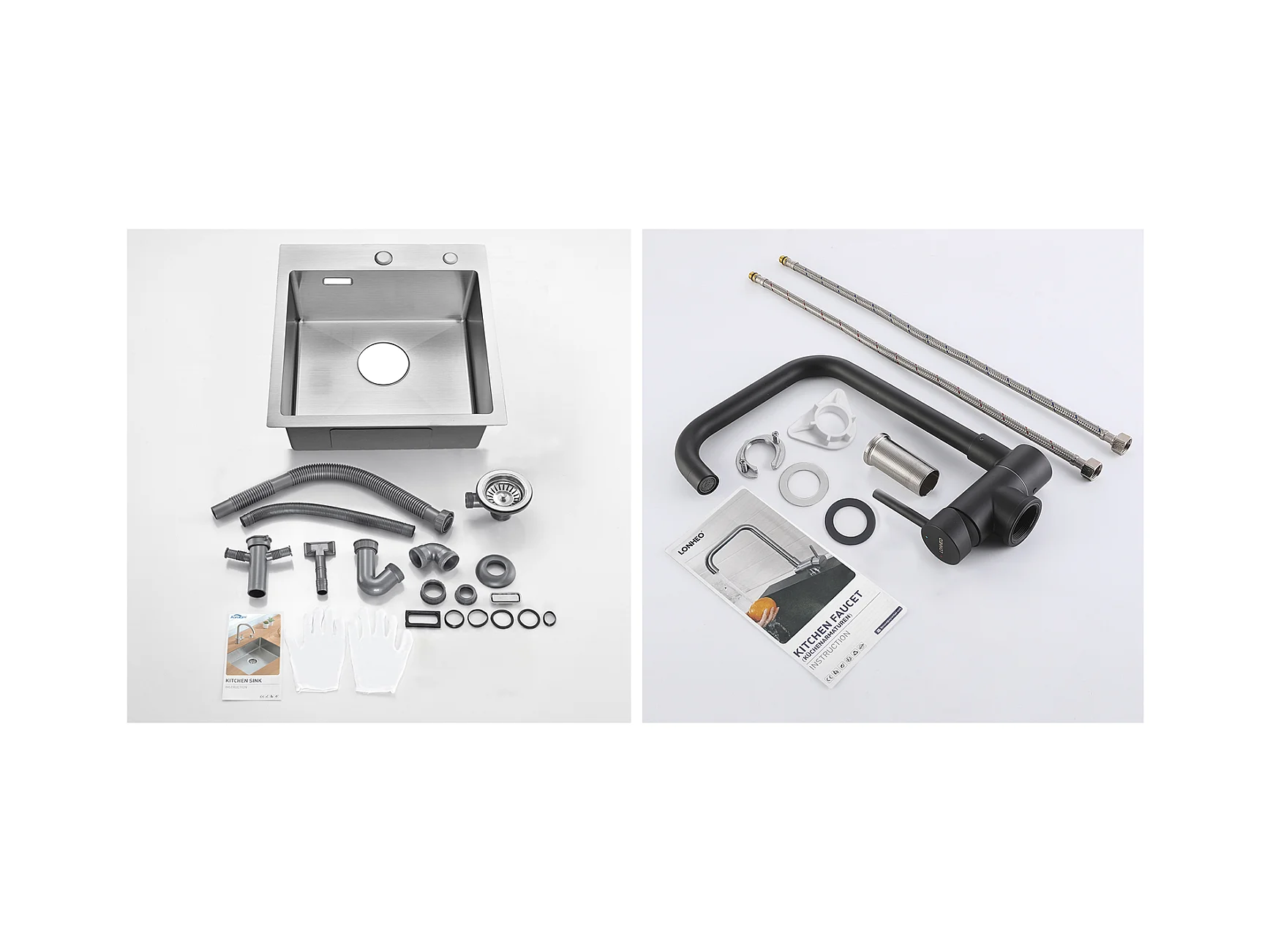 Évier de Cuisine 1 Bac 45x45CM Acier Inoxydable 304 , encastré et à Poserr+ Robinet de Cuisine Noir avec Douchette Extractible