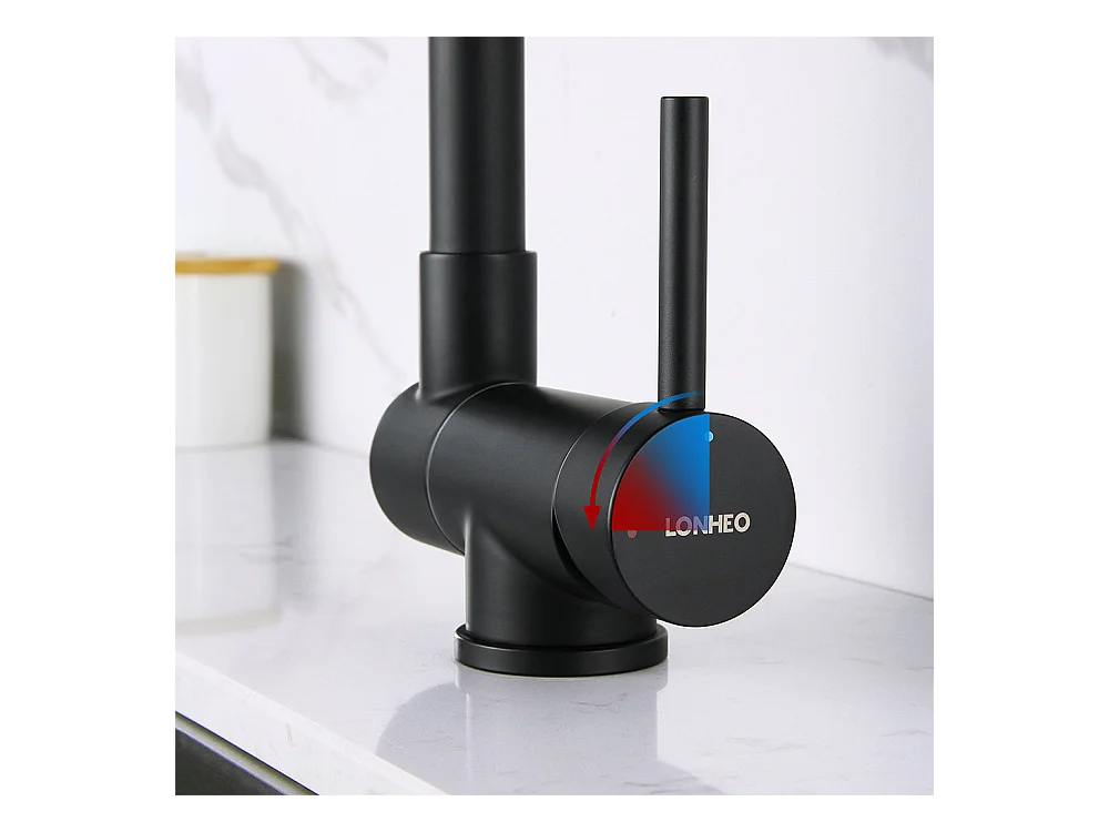 Robinet Cuisine Flexible Robinet avec 2 Types de Jets, Mitigeur Cuisine Rabattable, Flexible Mitigeur Evier avec Eau Chaude et Froide (Noir)