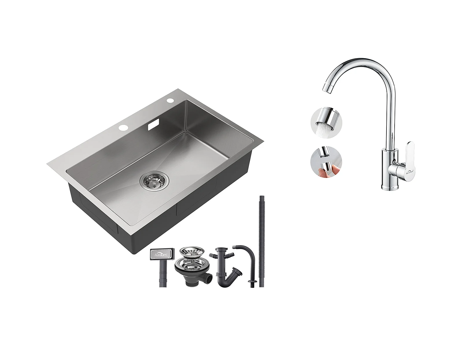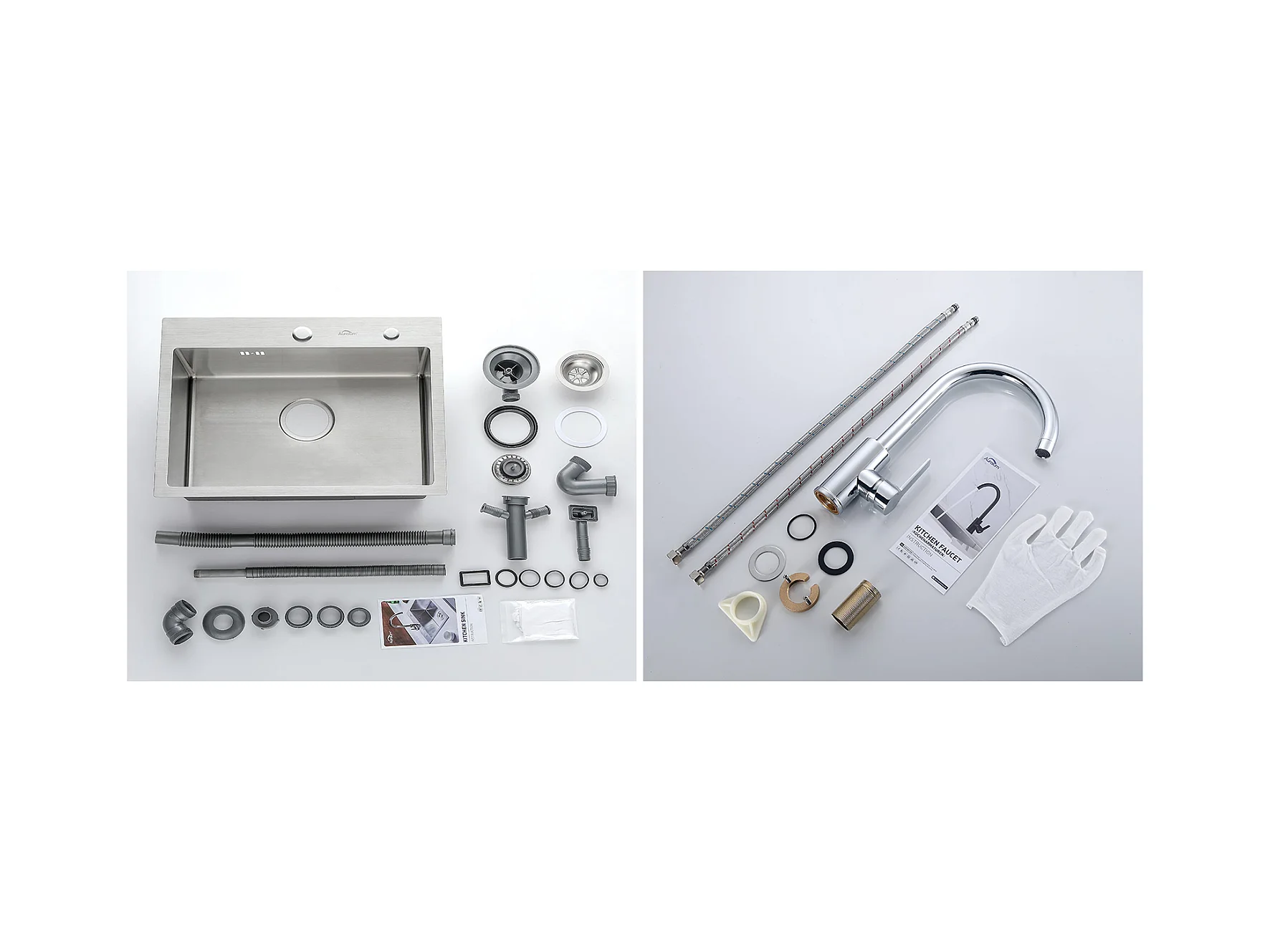 Évier Cuisine 1 Bac 45x45CM Acier Inoxydable 304 ,encastré et à Poser+Robinet de Cuisine Flexible Bec Haut Orientable