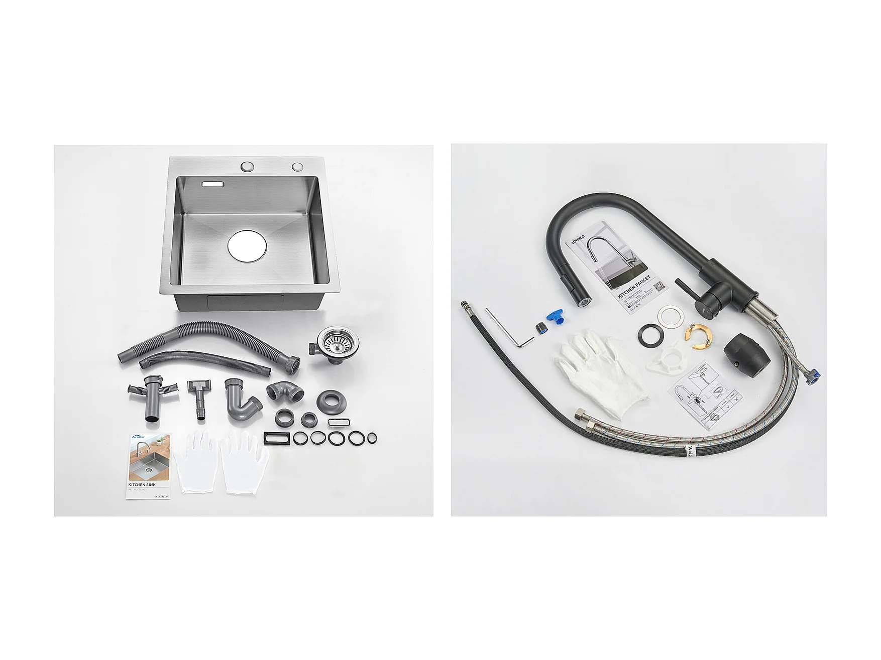 Évier Cuisine 1 Bac 45x45CM Acier Inoxydable 304 ,encastré et à Poser+Robinet de Cuisine Noir, Inox Extractible Rotatif à 360 °, 2 Fonctions