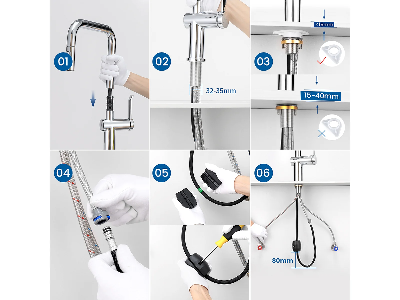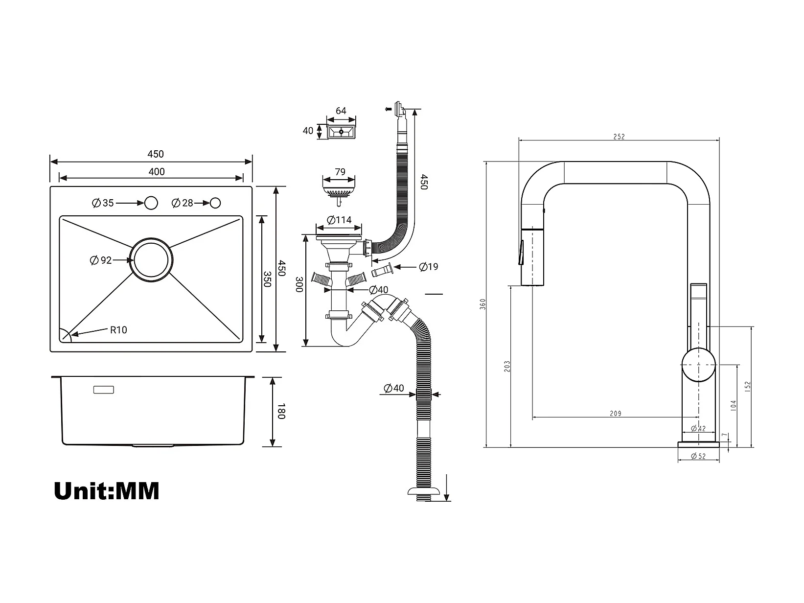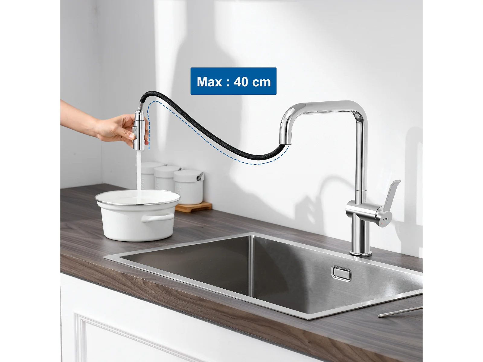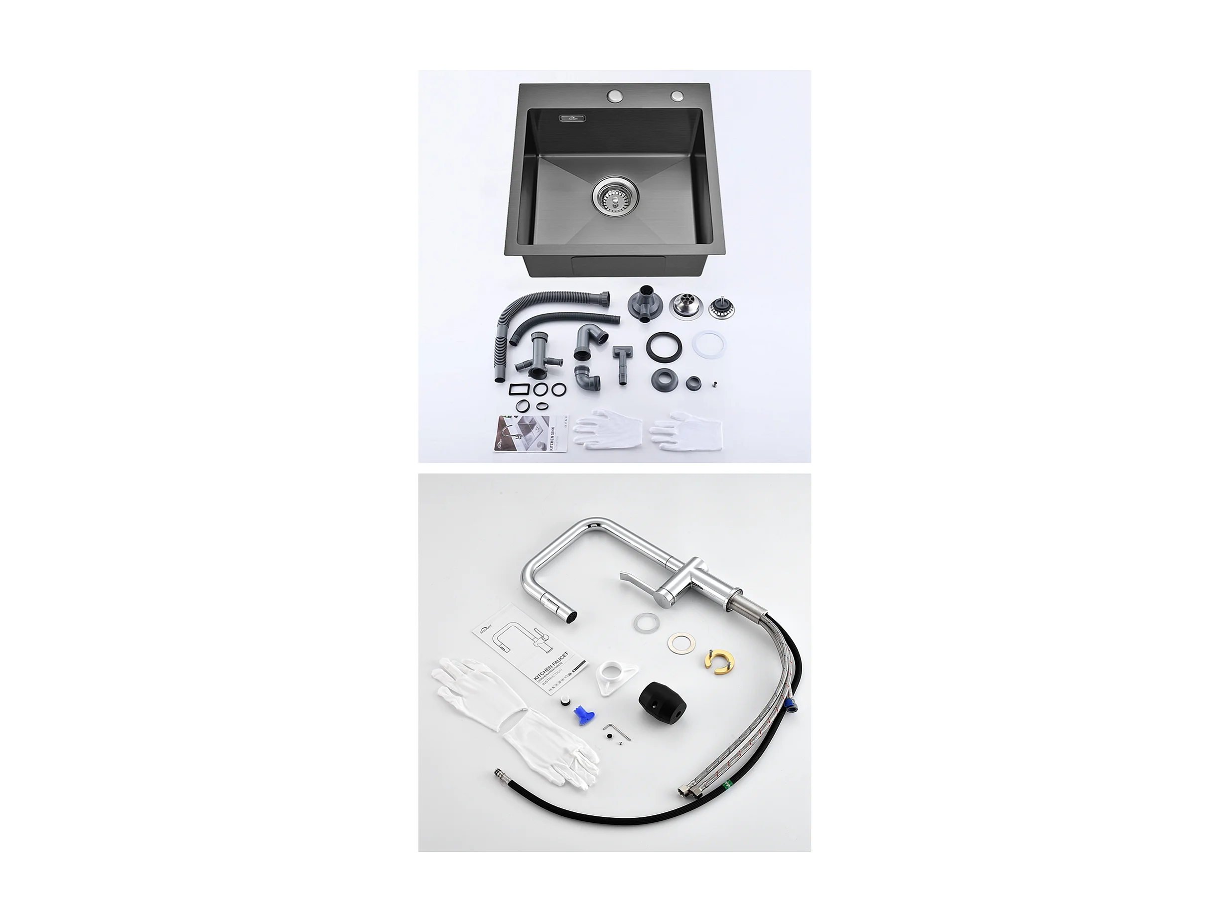 Évier Cuisine 1 Bac 45x45CM Acier Inoxydable 304+Robinet de Cuisine avec Douchette Extractible Rotatif 360 °2 Fonctions, Barboteur démontable,Chromé